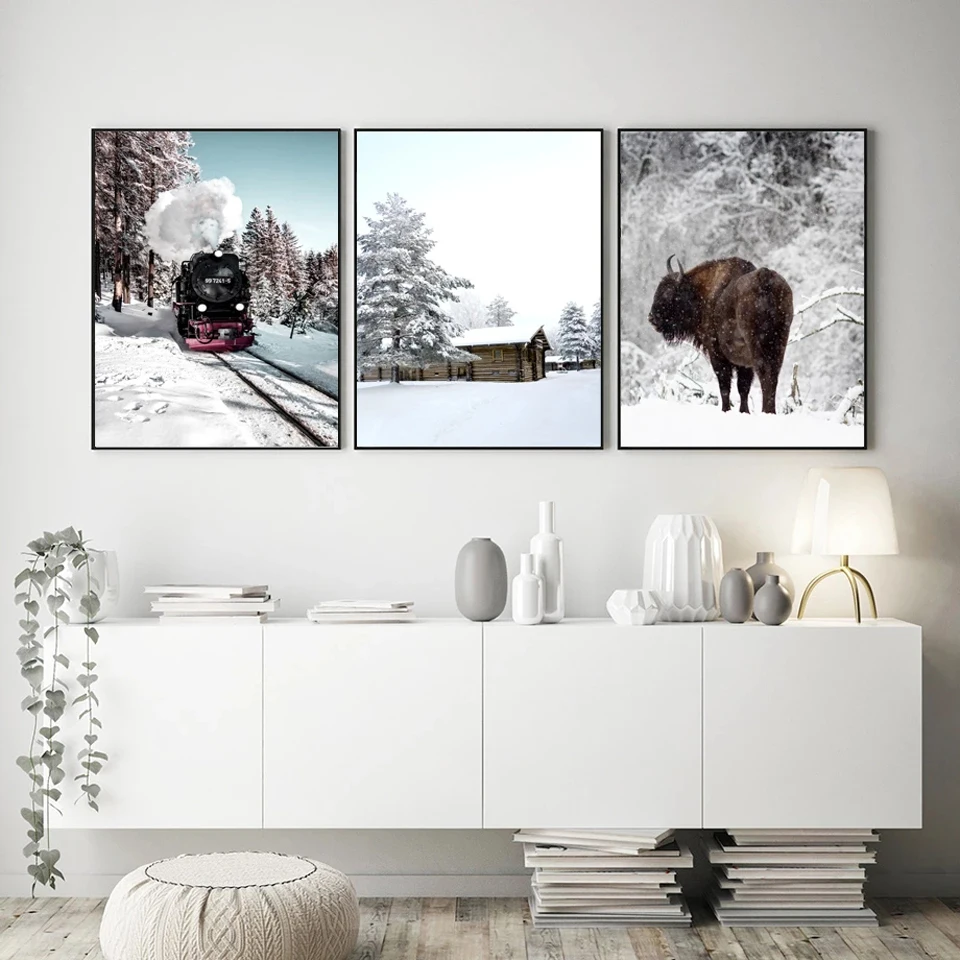 3 шт. настенное искусство Красные Деревья лес черный и белый водопа...