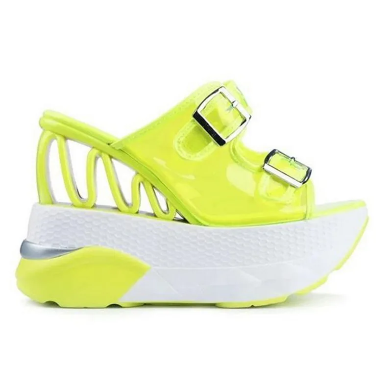 Шлепанцы женские из ПВХ, прозрачные сандалии с воздушной подушкой, очень высокая платформа, ремешки с пряжками, летняя обувь