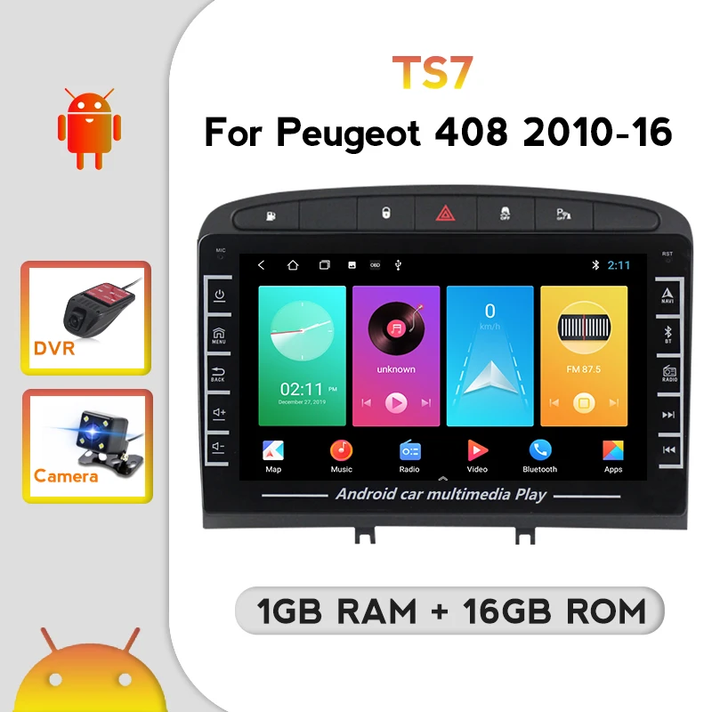 Автомагнитола для PEUGEOT 308, 408, 2010, 2016-2015, 1 г + 16 г, с ...