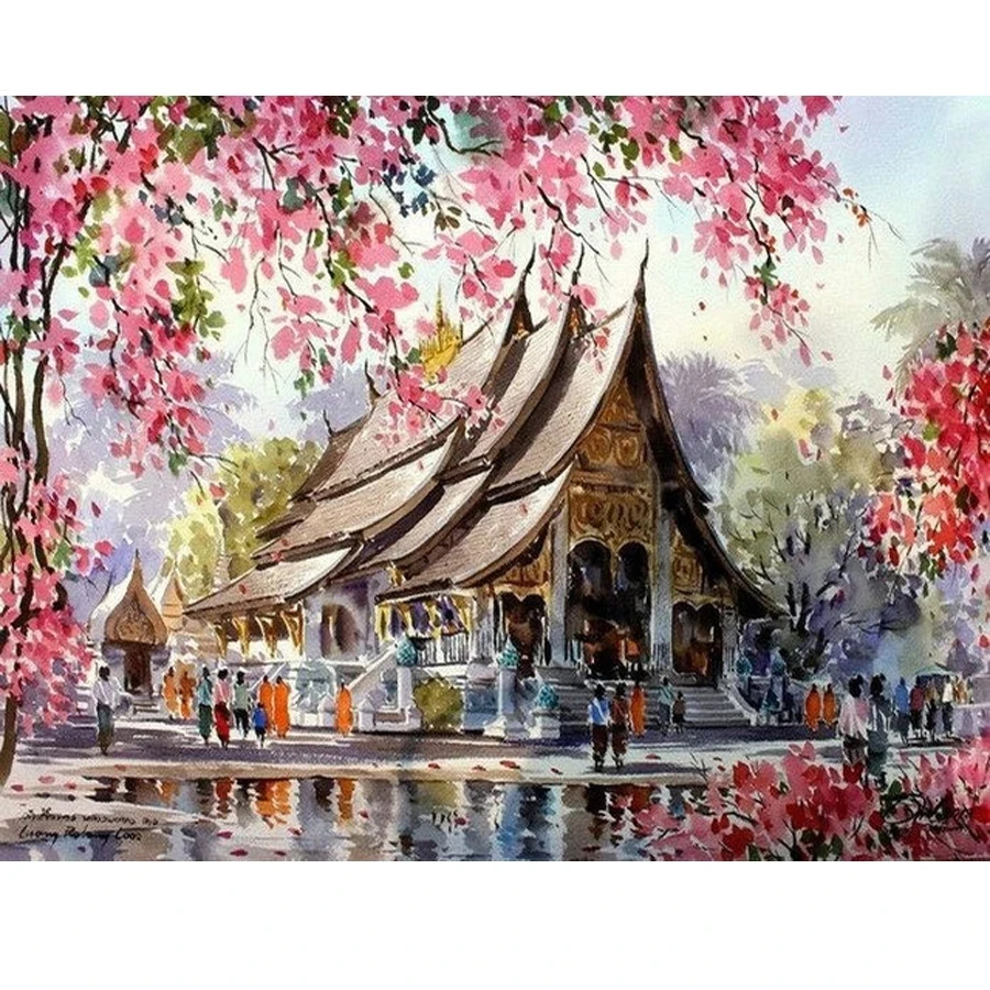 Алмазная вышивка Сакура пейзаж алмазная живопись вышивка крестиком ...