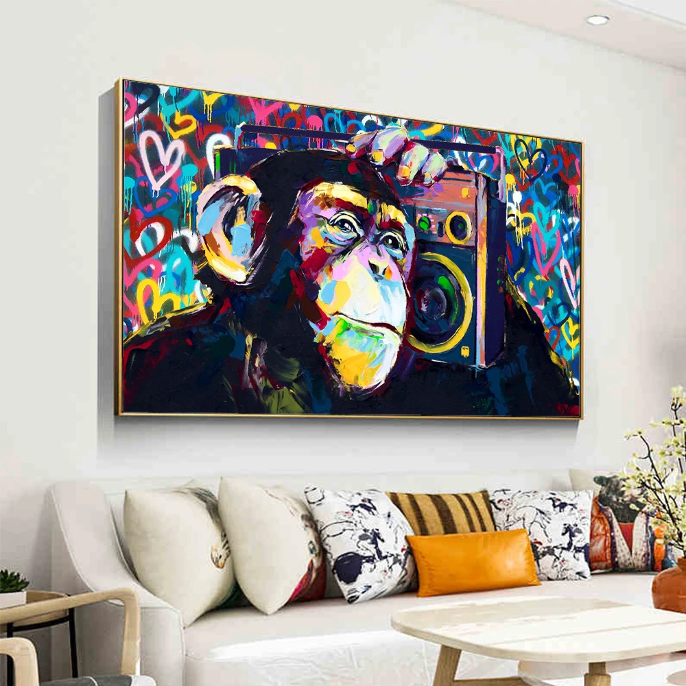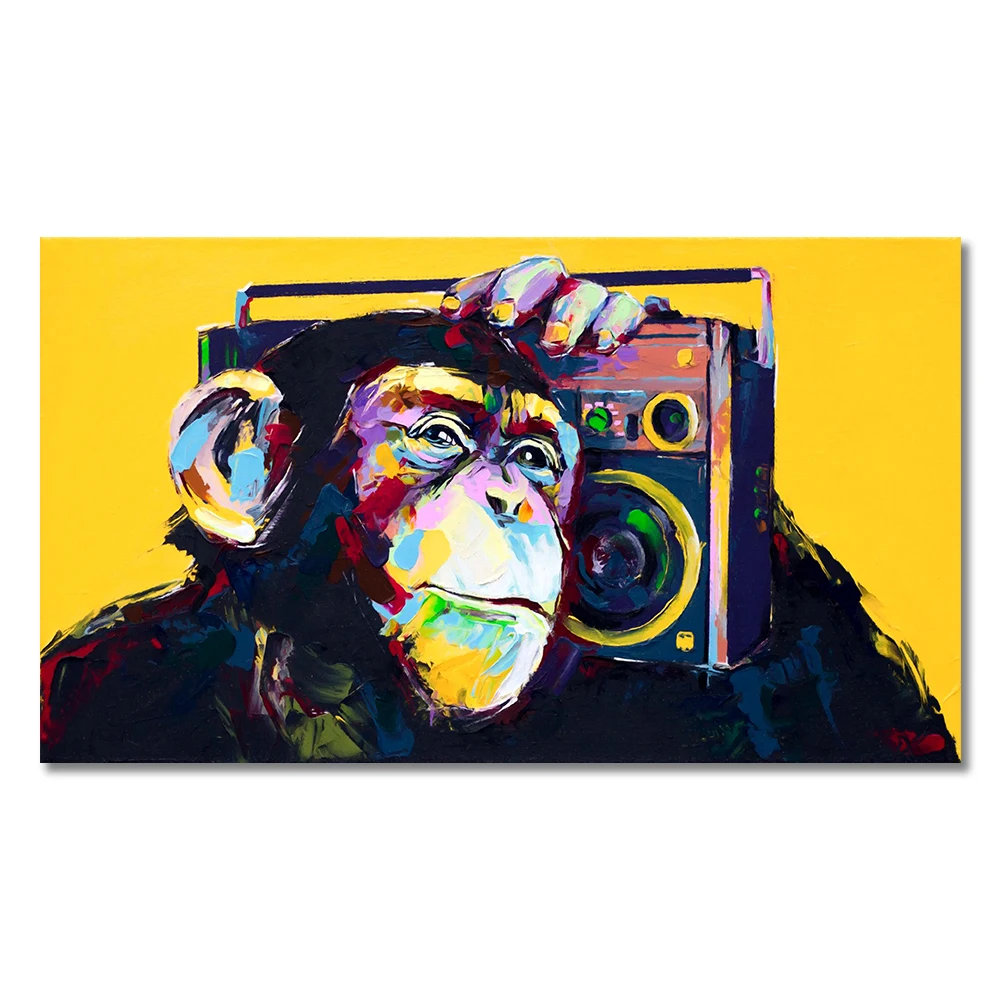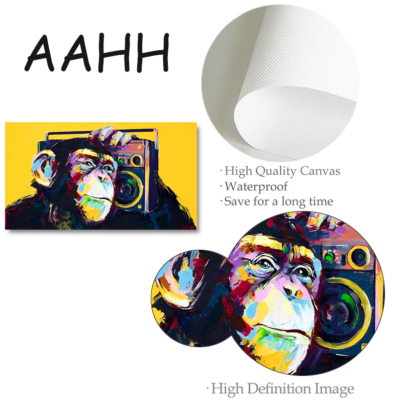 Картина на холсте AAHH большого размера, настенный постер в современном стиле с изображением животных, обезьяна, прослушивание музыки для гостиной