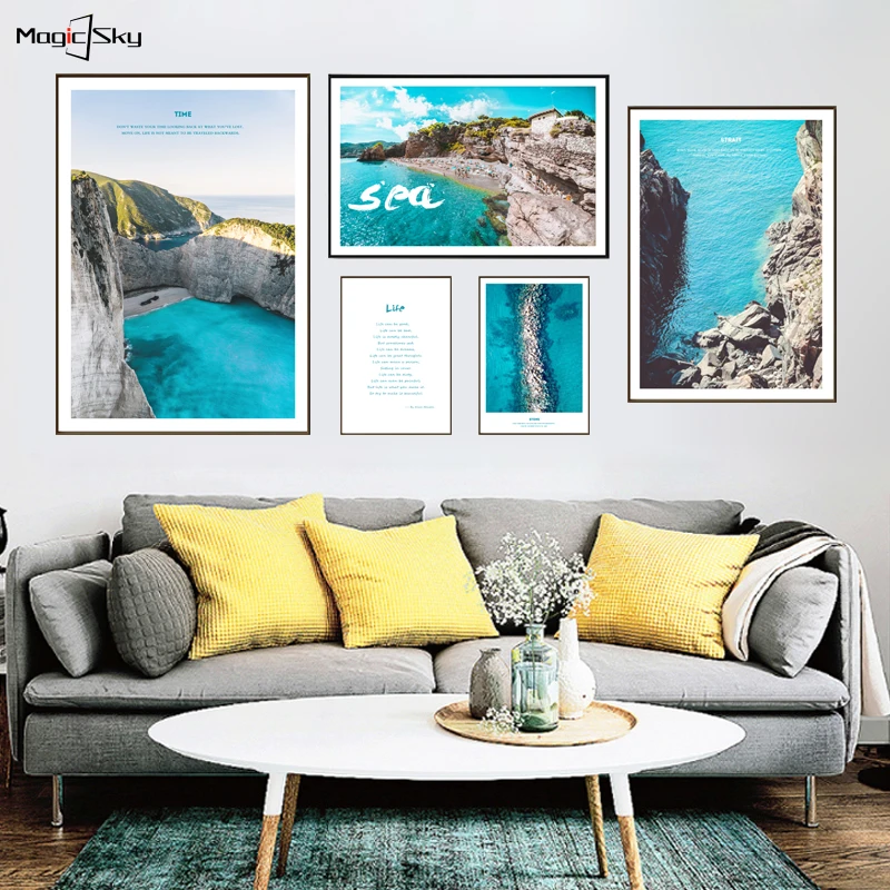 Скандинавский морской пейзаж, стена, искусство на холсте, стена, современный декор гостиной