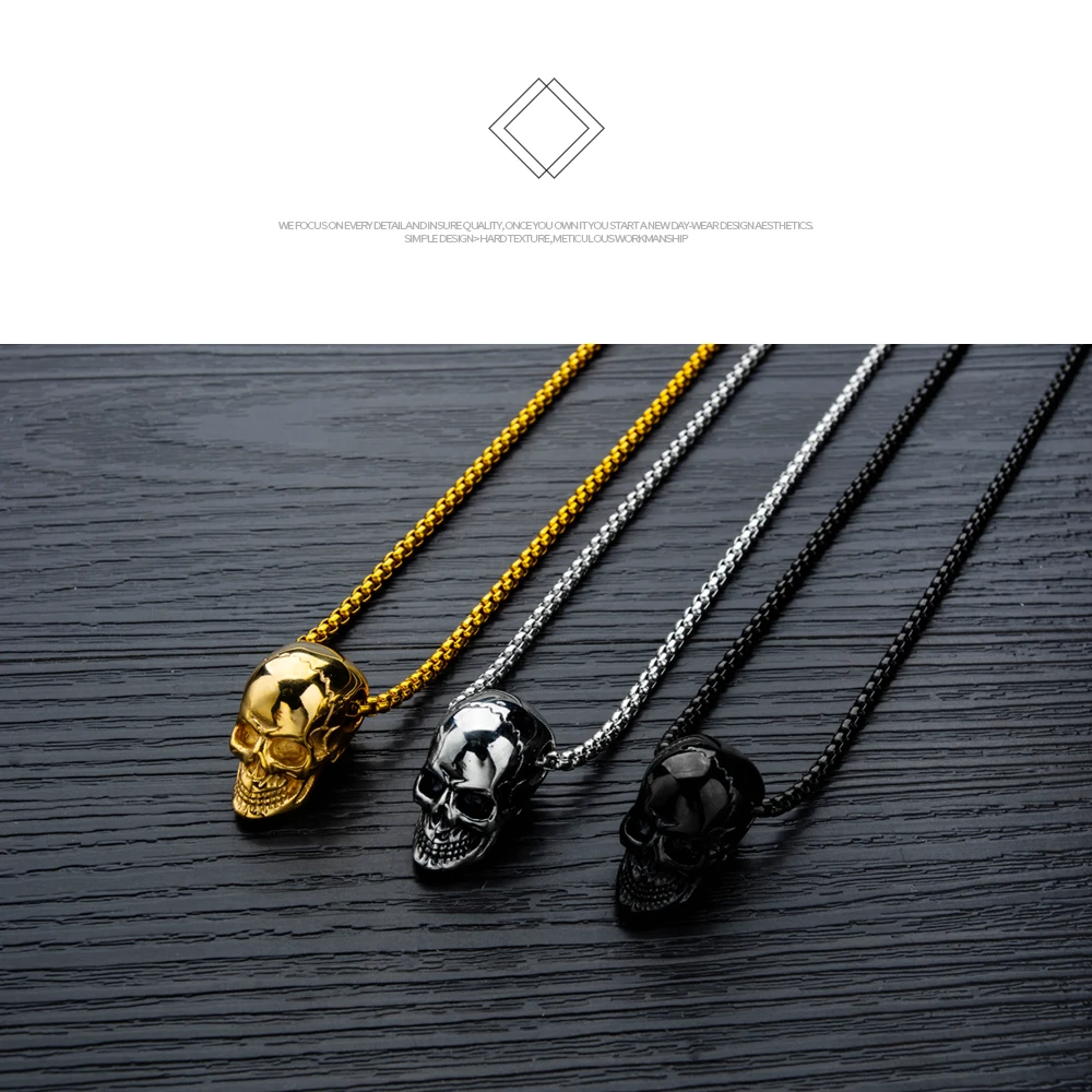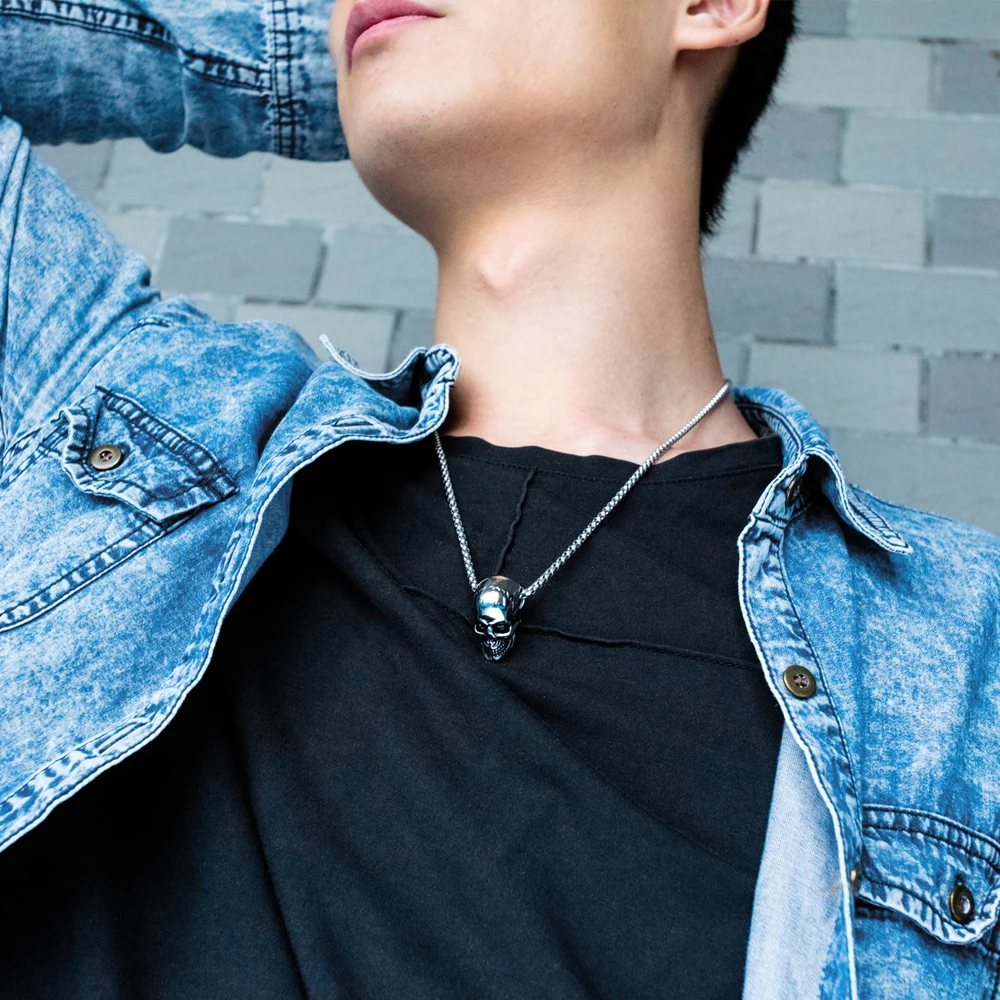 Мужская подвеска в виде черепа, скользящая цепочка из нержавеющей с...