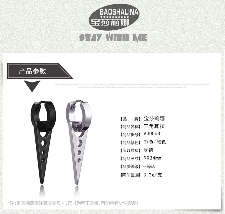 Клипса из титановой стали для мужчин и мальчиков, модная индивидуализированная треугольная серьга неправильной формы с черным, в стиле панк, бижутерия в Корейском стиле, 1 шт.