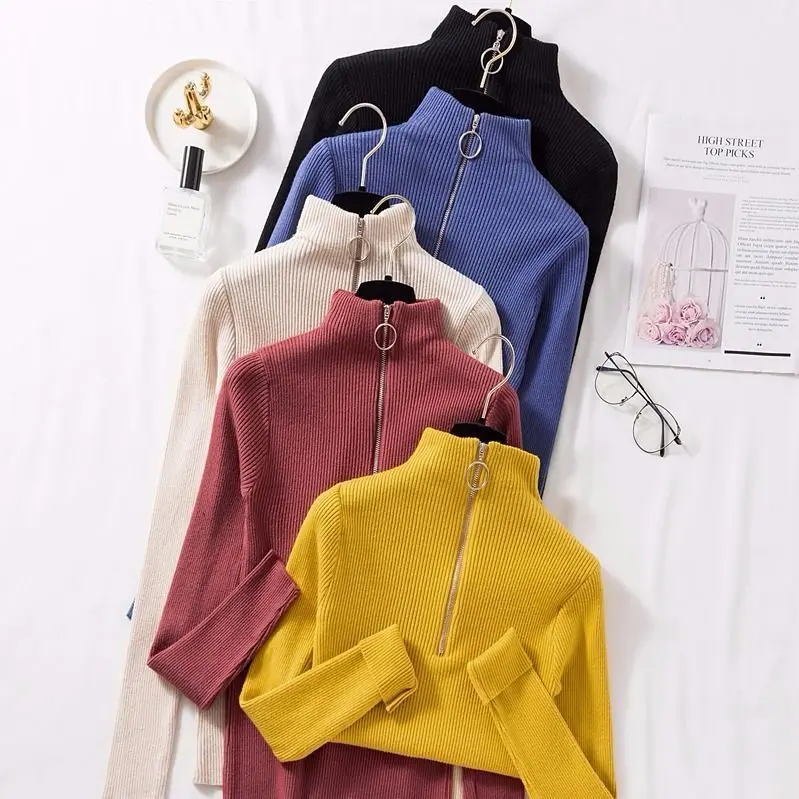 Женский свитер, водолазка на молнии, свитер с длинным рукавом, облегающий свитер, верхняя одежда, осень-зима