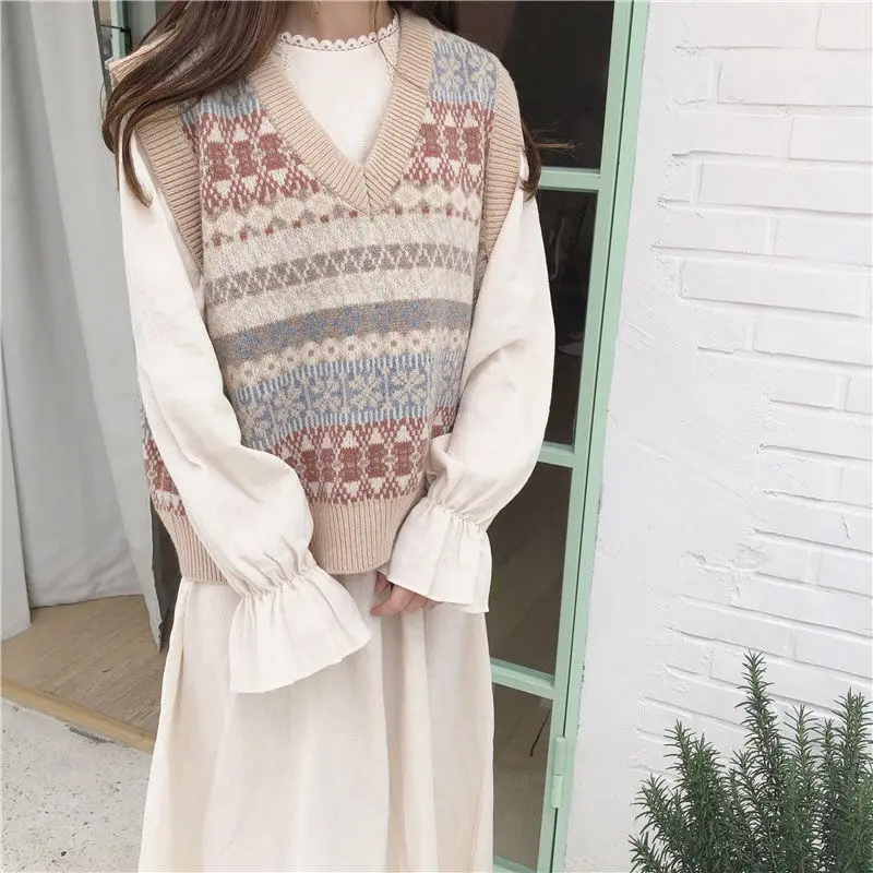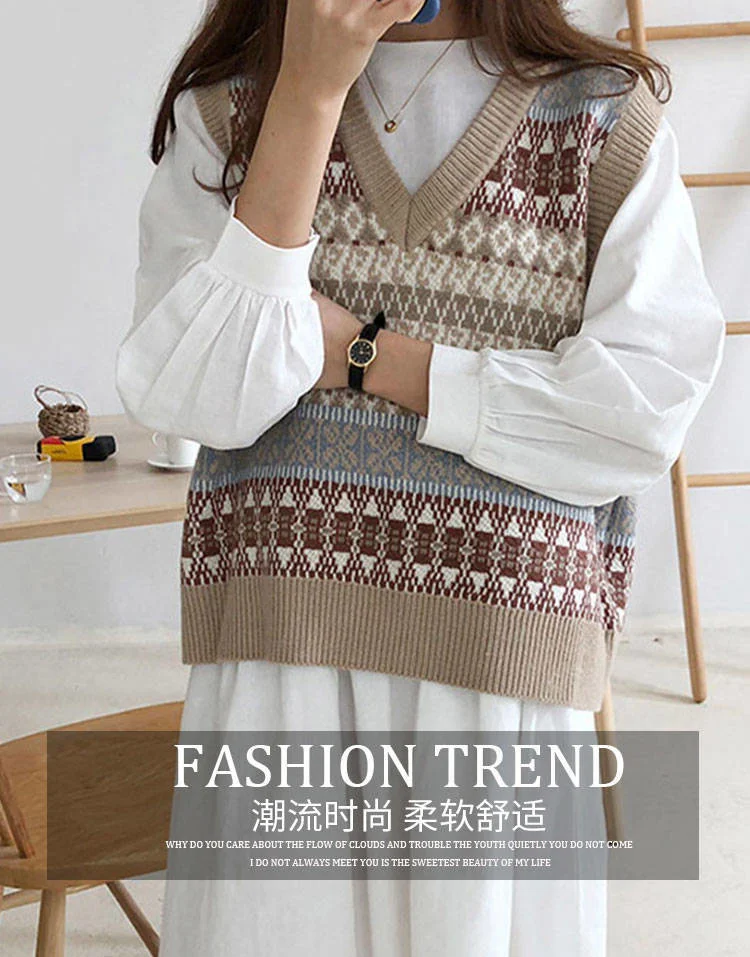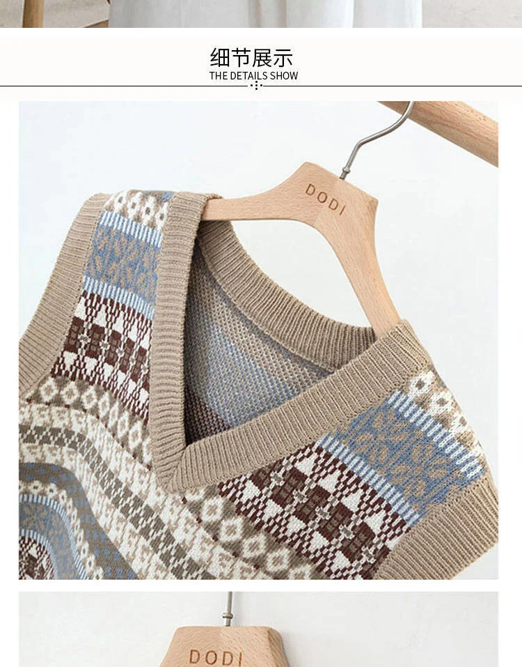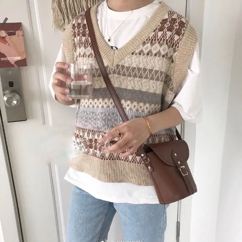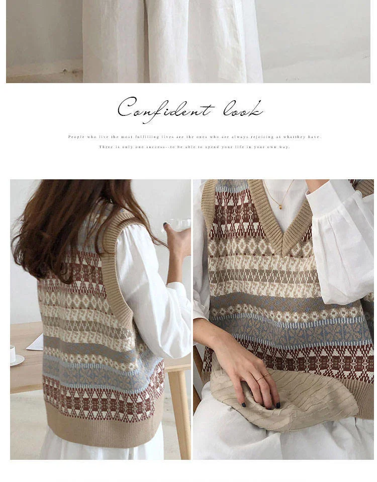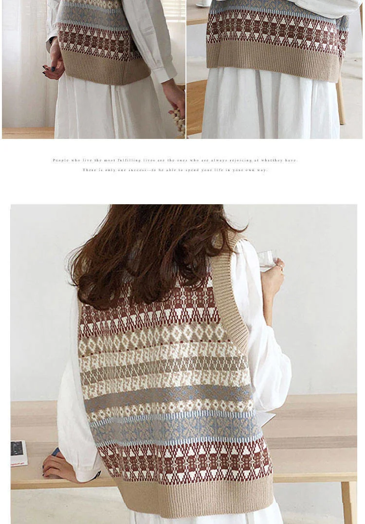 Винтажный вязаный жилет с V-образным вырезом, свитер, Женский пулов...