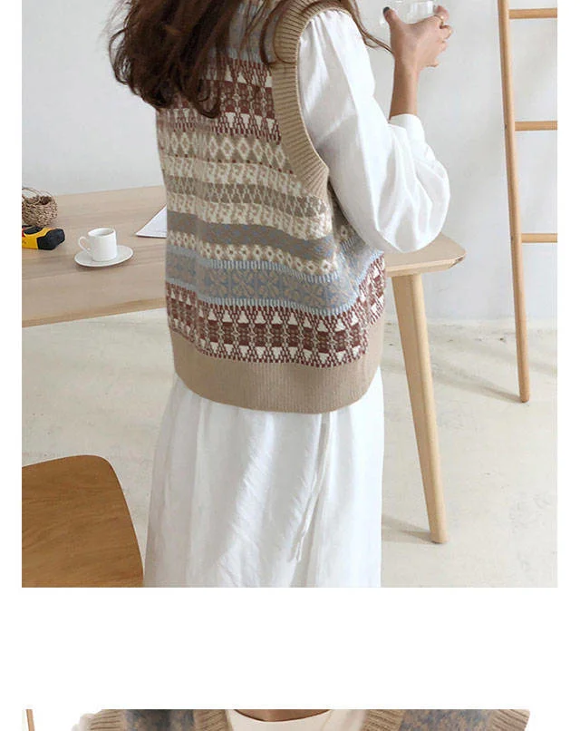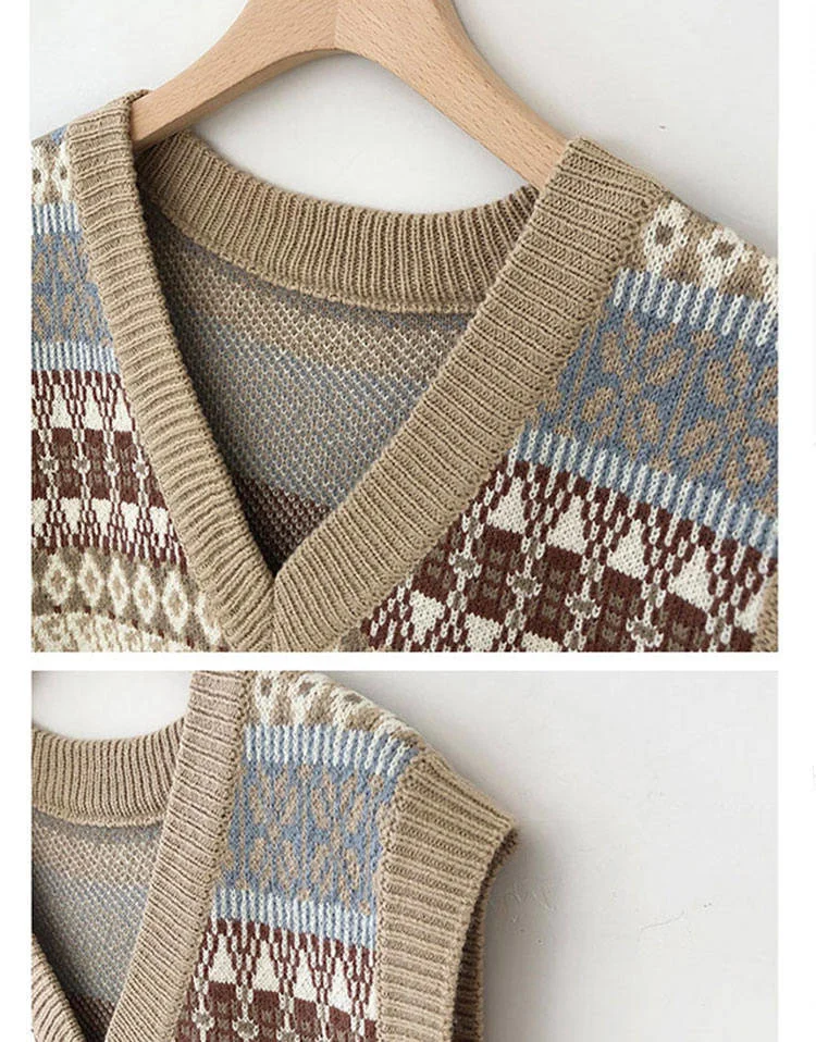 Женский вязаный свитер без рукавов с геометрическим рисунком и V-об...