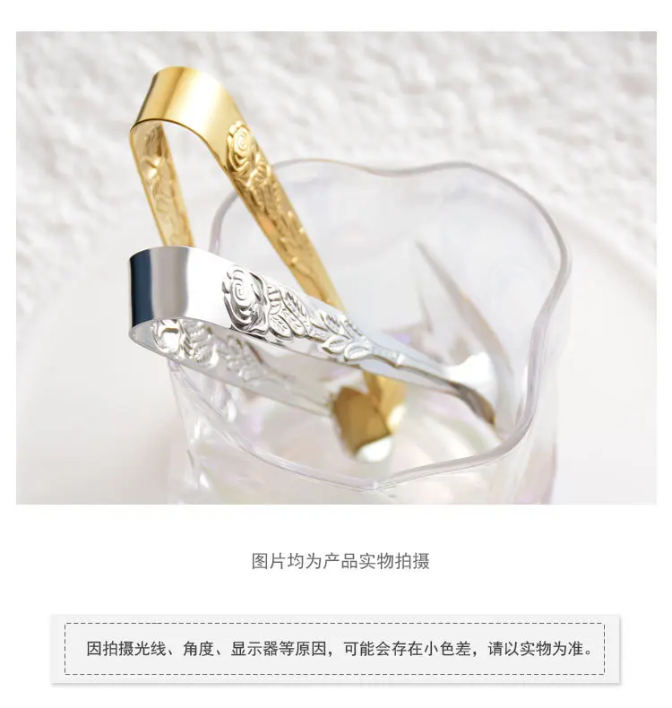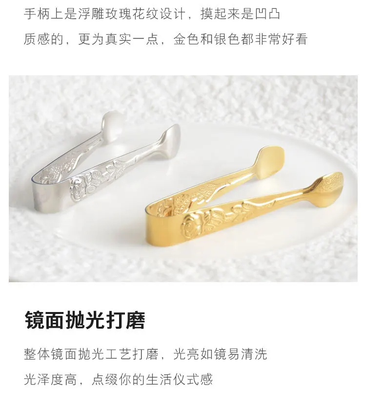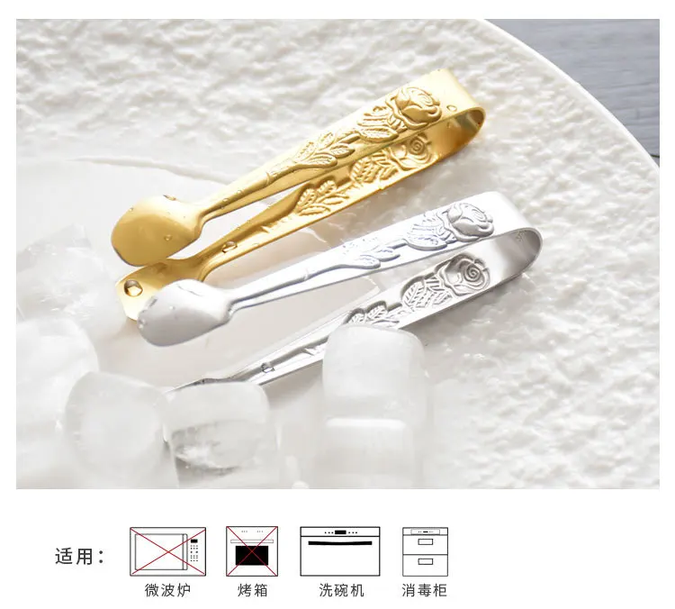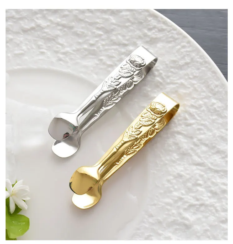 Щипцы для сахара, мини-Пищевые Щипцы из нержавеющей стали 304, зажим для кубиков льда с розовым узором, зажим для печенья, зажим для ЛИМОННЫХ ломтиков