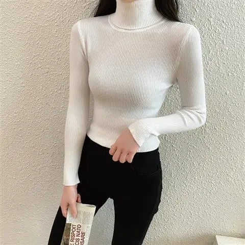 Женский свитер, Женская водолазка с длинным рукавом, свитер на осень и зиму, облегающее нижнее белье, Топ