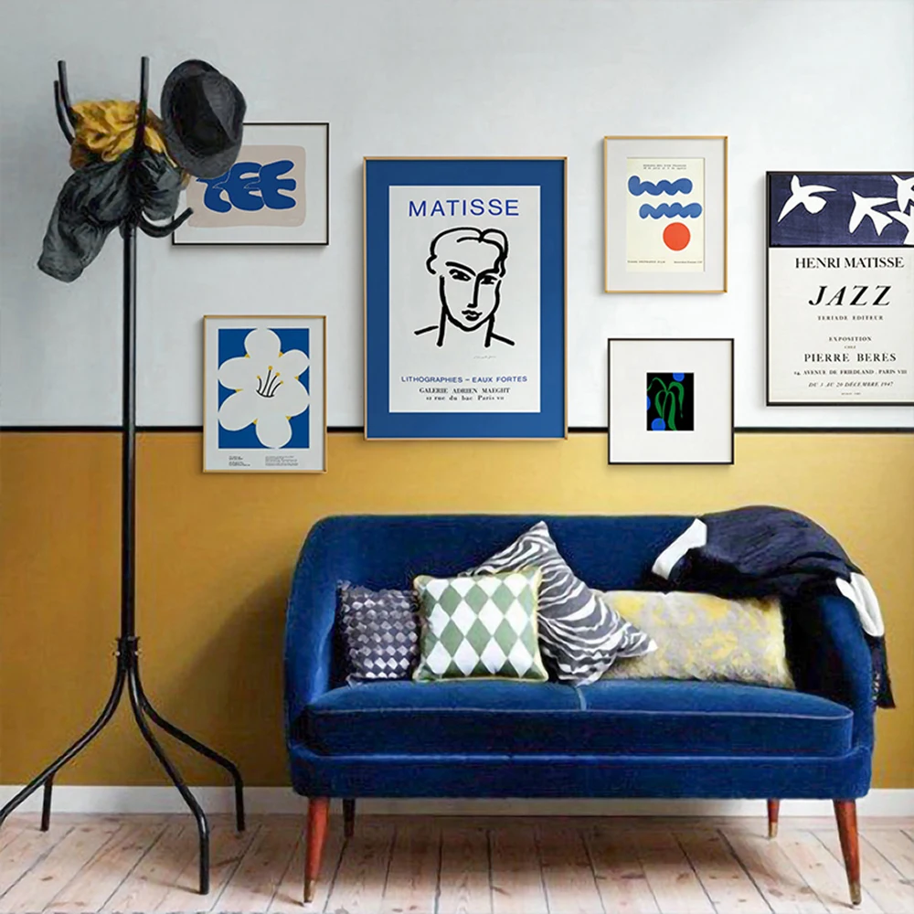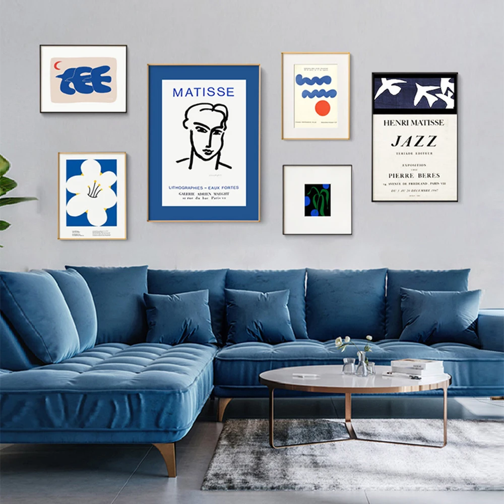 Картина на холсте с изображением синих цветов и птиц, для гостиной, для украшения дома
