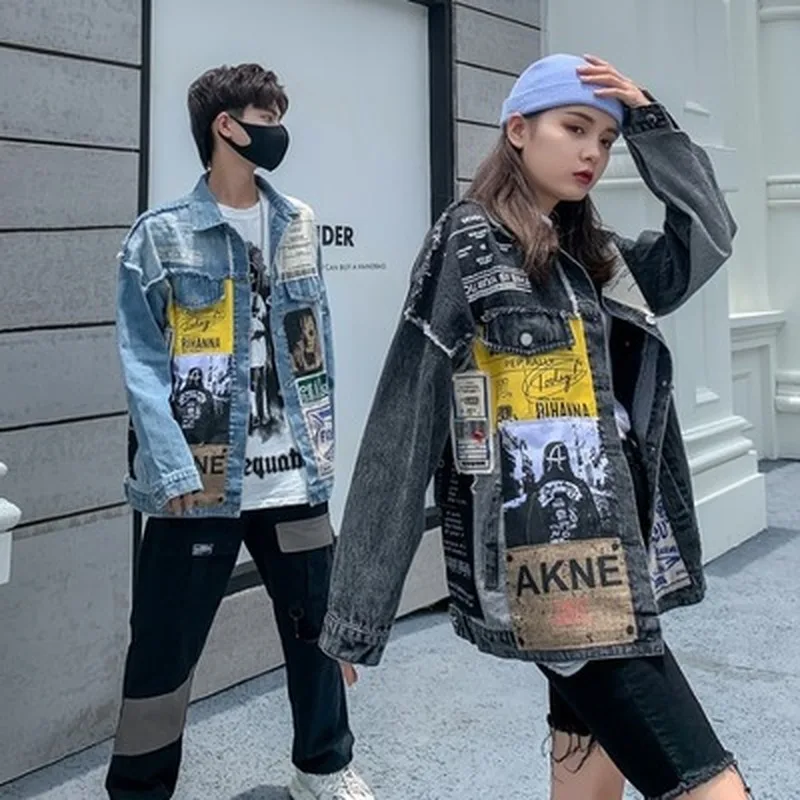 Женская ассиметричная джинсовая куртка, черная свободная ковбойская куртка, уличная одежда для студентов, осень 2021