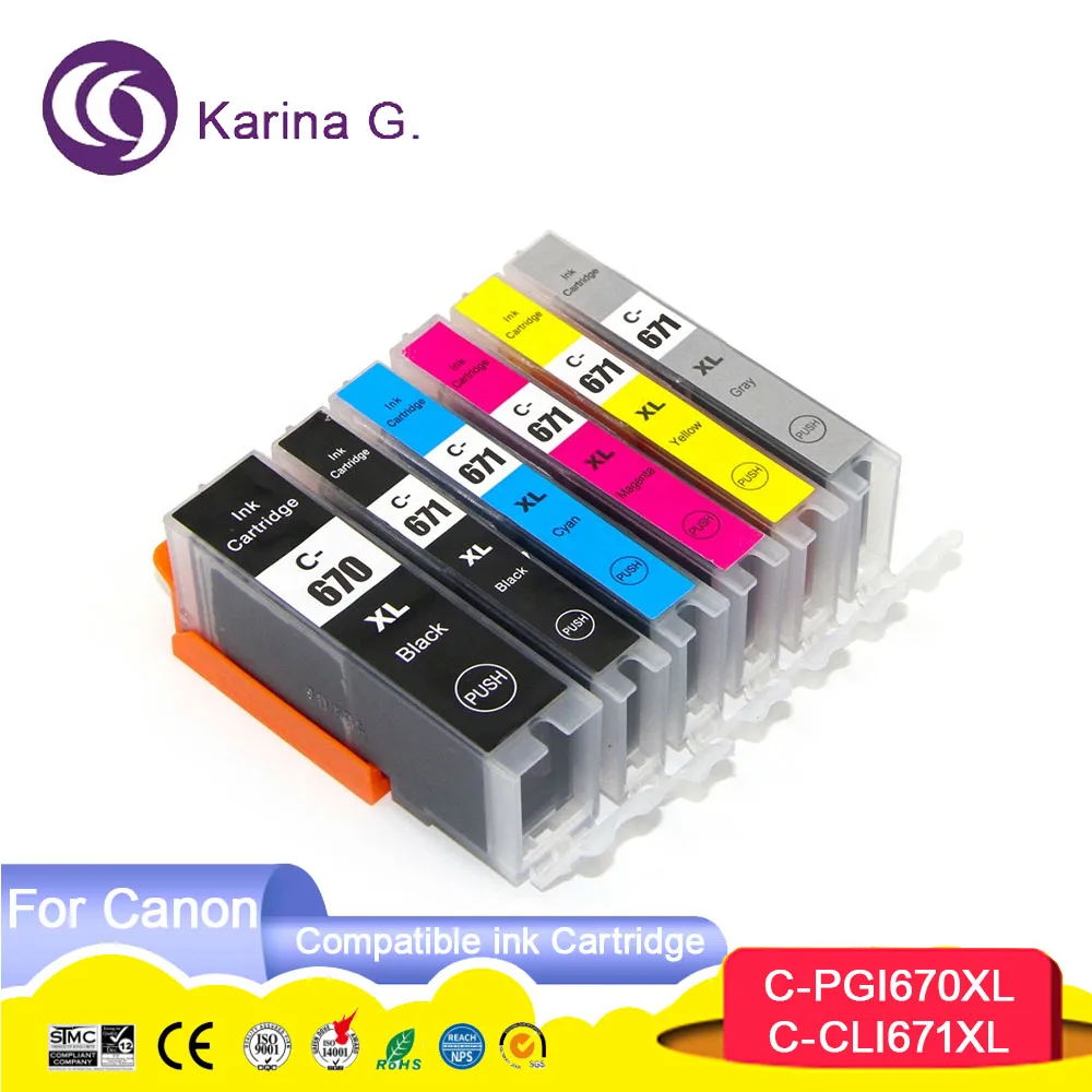 Название продукта: совместимый чернильный картриджНомер картриджа: C-PGI670XL C-CLI671XLЦвет: BK PBK C M Y (GY)Состояние картриджа: полный с черниламиЧип: установка со стабильным чипомСрок годности: 24 месяца