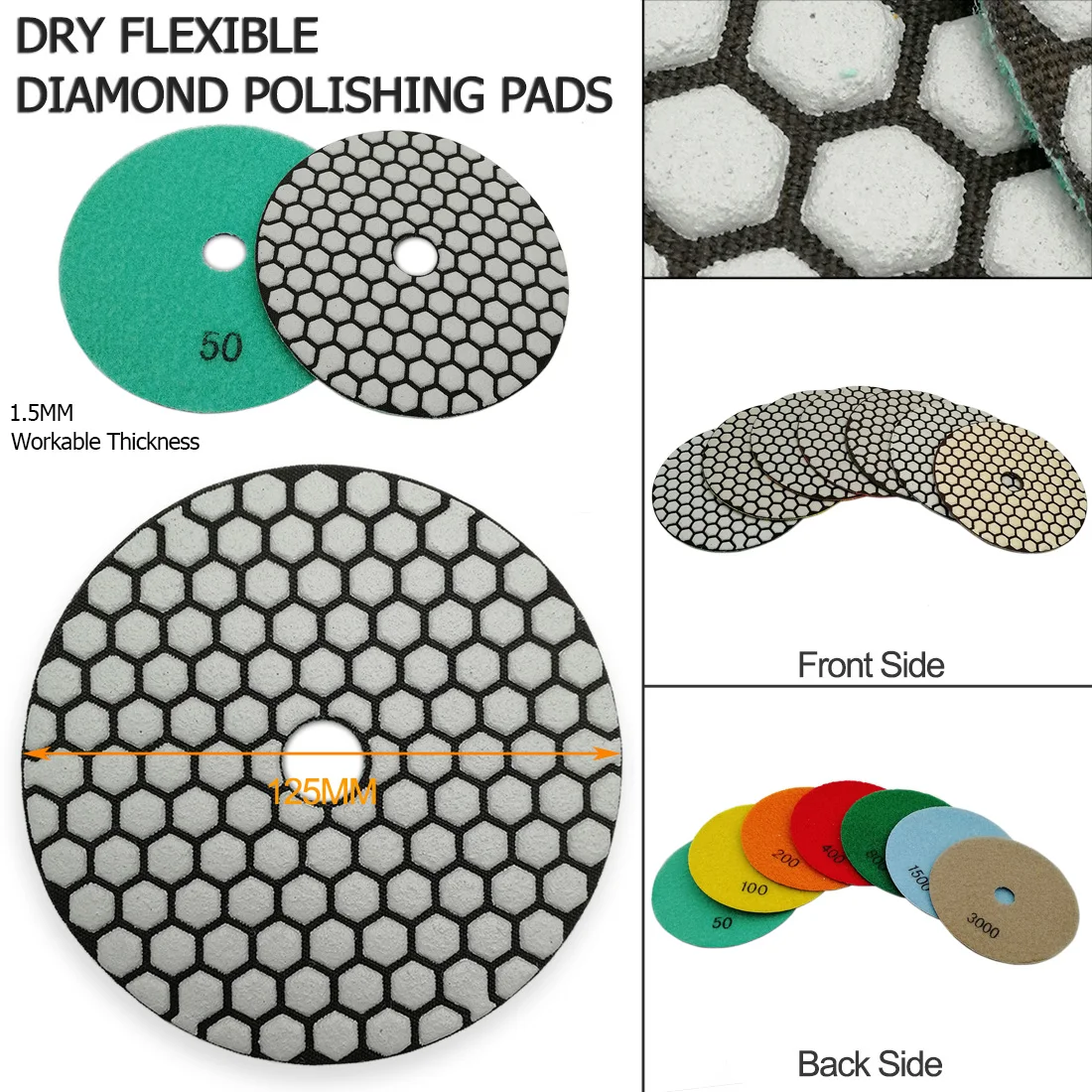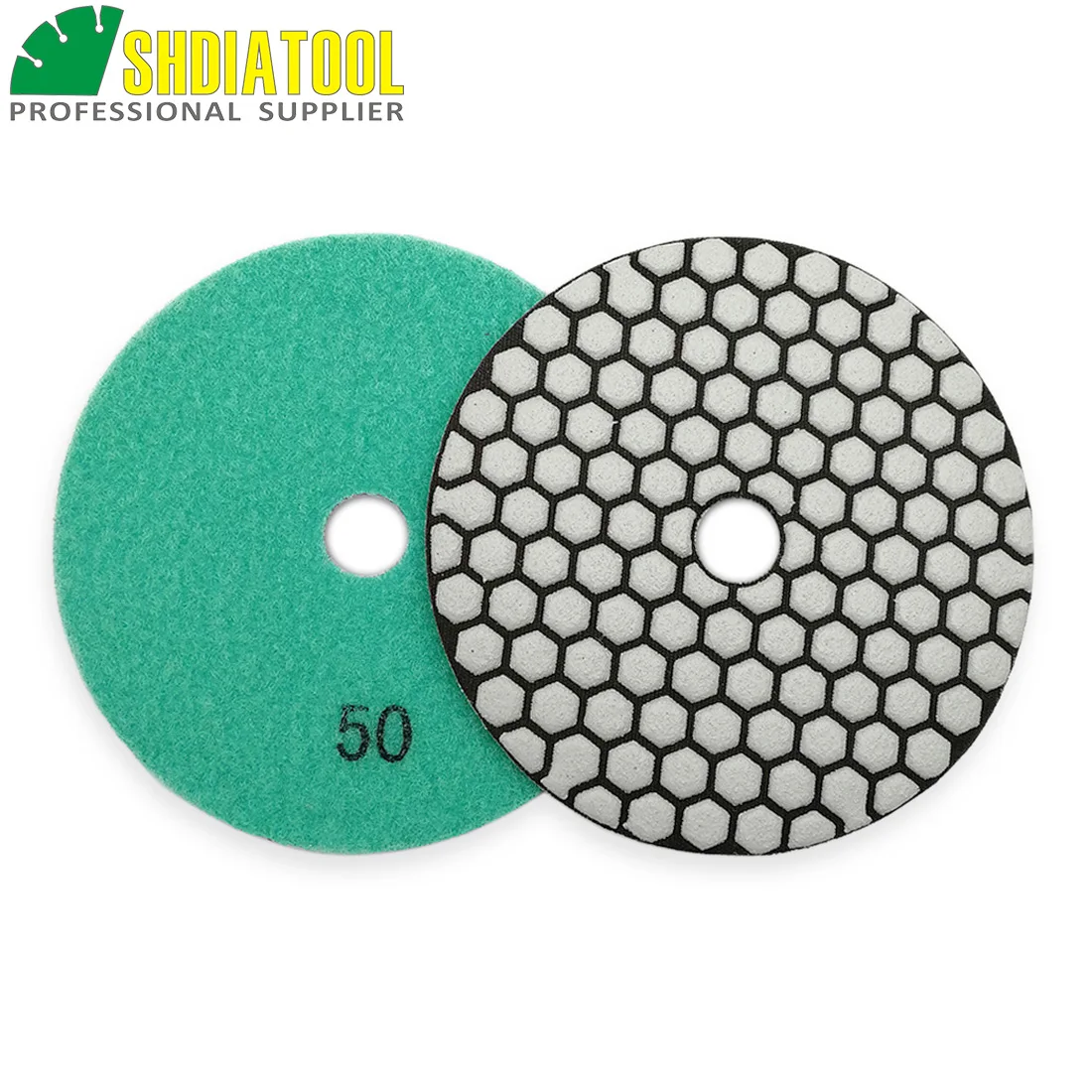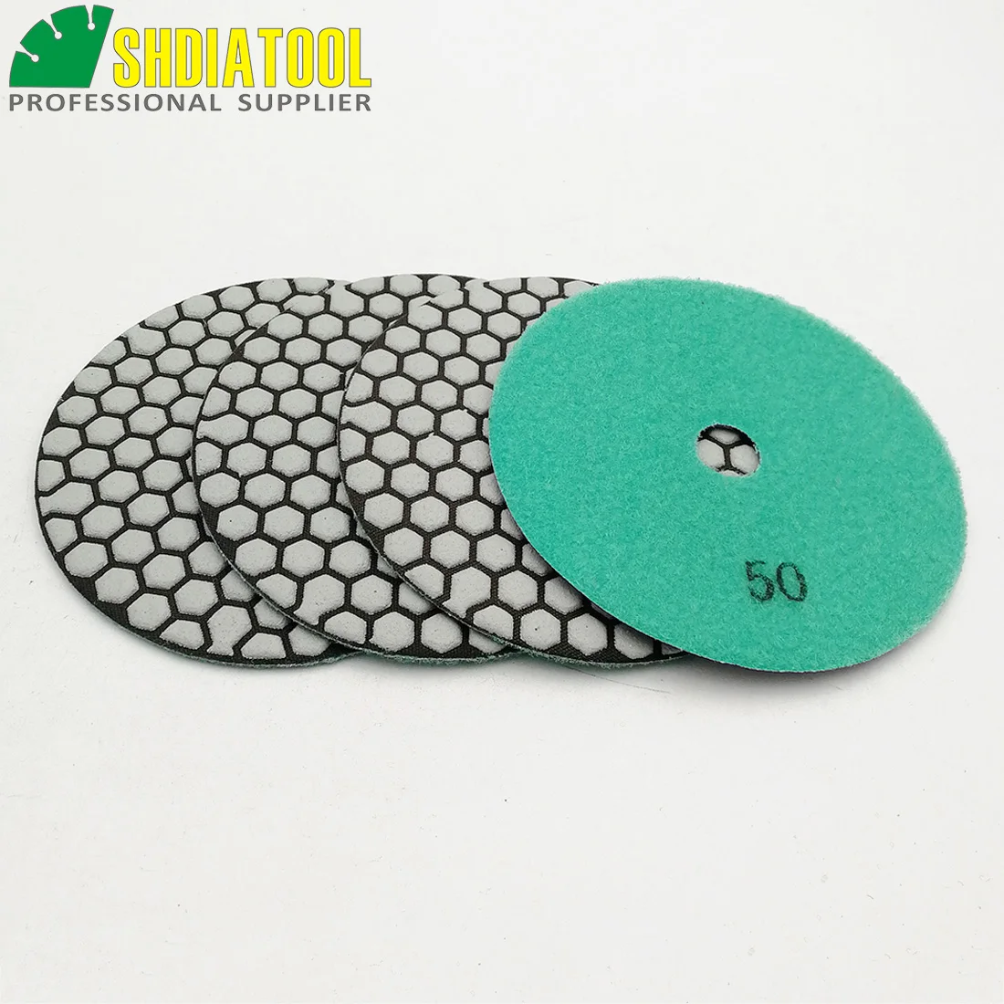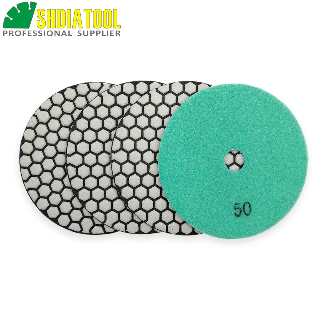 Шлифовальные диски SHDIATOOL, 4 шт., 125 мм, #50, для сухой полировки гранита, мрамора, керамики, диаметр 5 дюймов, Алмазный гибкий шлифовальный диск
