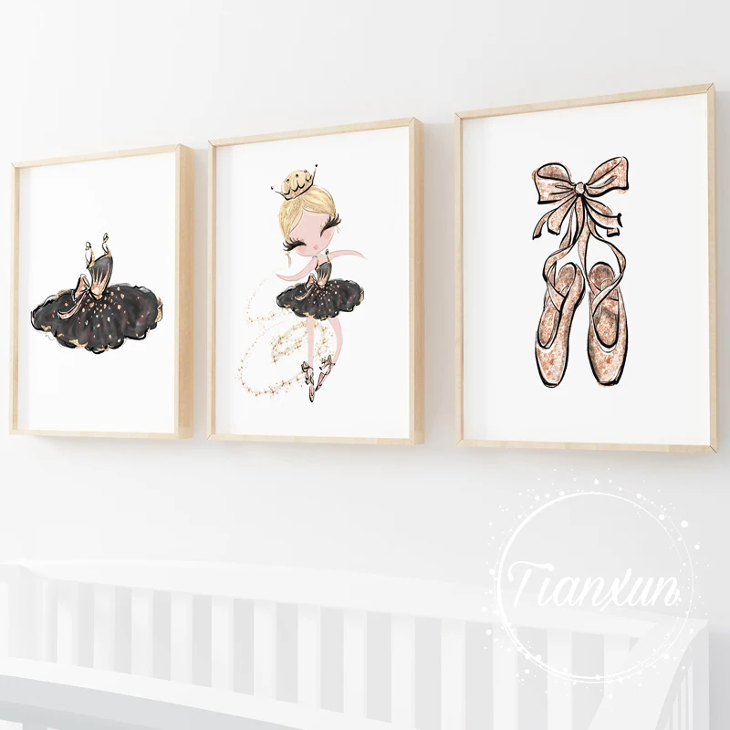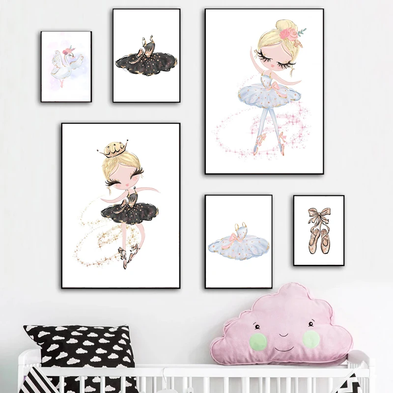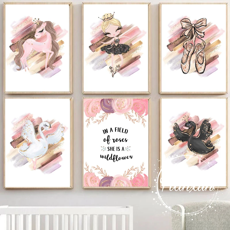 Современная Картина на холсте с изображением принцессы лебедя, танцевальная девушка, пони, Постер с изображением животных, картины для декора детской комнаты