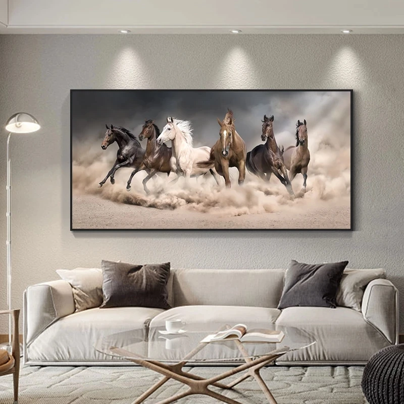 Принты и плакаты Бегущих Лошадей, напечатанные на холсте, украшают домашнюю гостиную, художественные картины