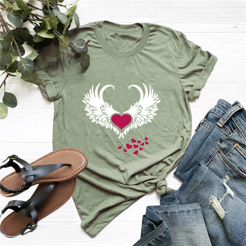 Футболка с принтом в виде крыльев и сердца, лето S-5XL г., размера плюс, 100%