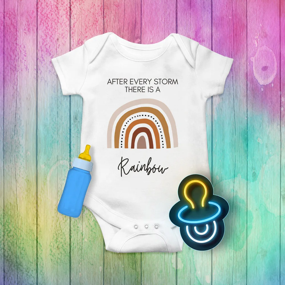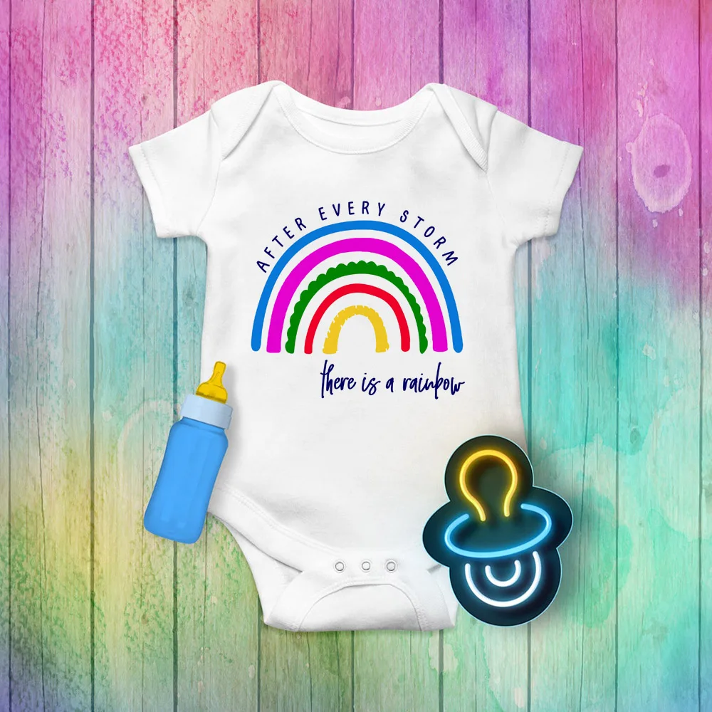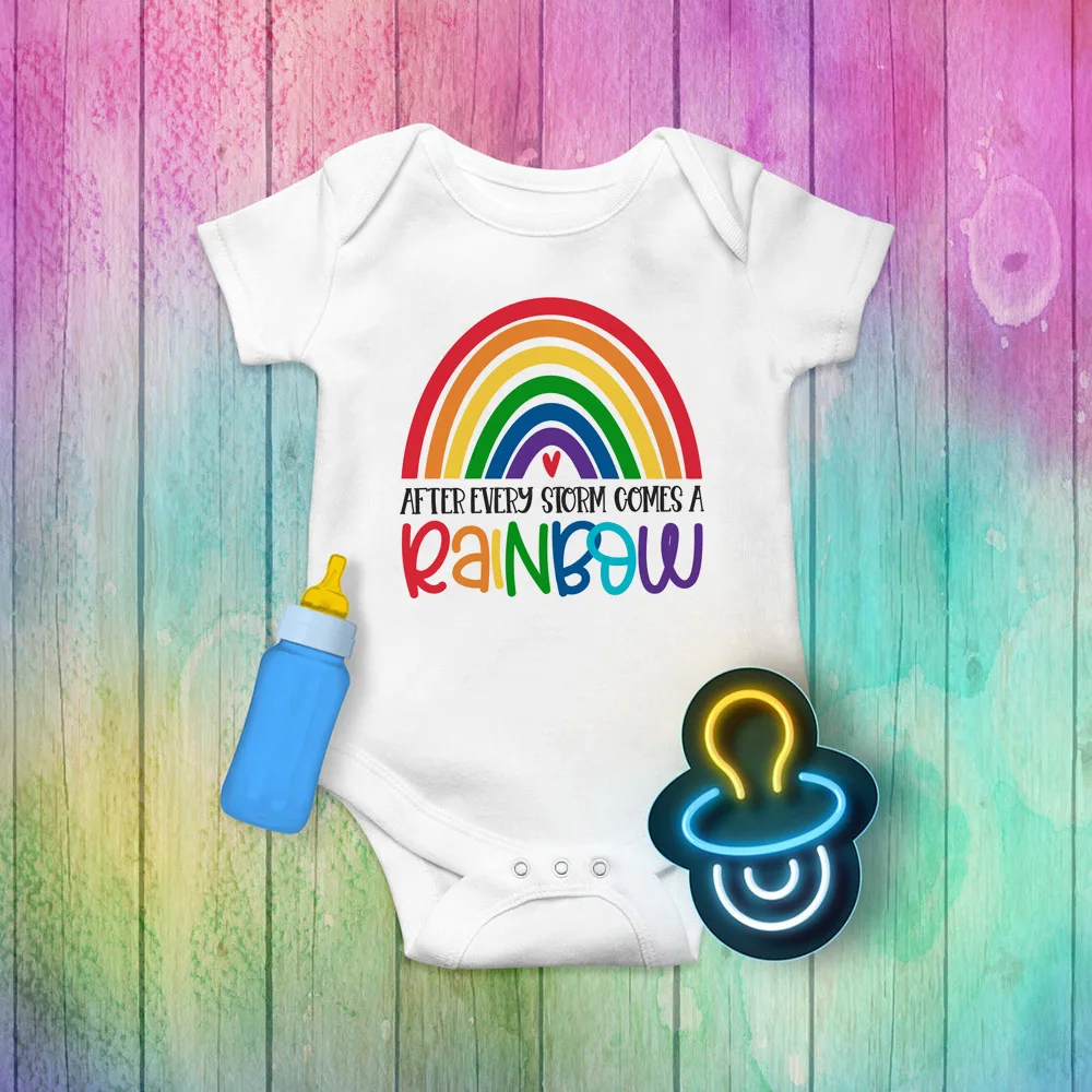 Детский комбинезон с радужным принтом «после каждого шторма»; Детский комбинезон с радужным рисунком; Летний комбинезон с короткими рукавами; Ropa Wear