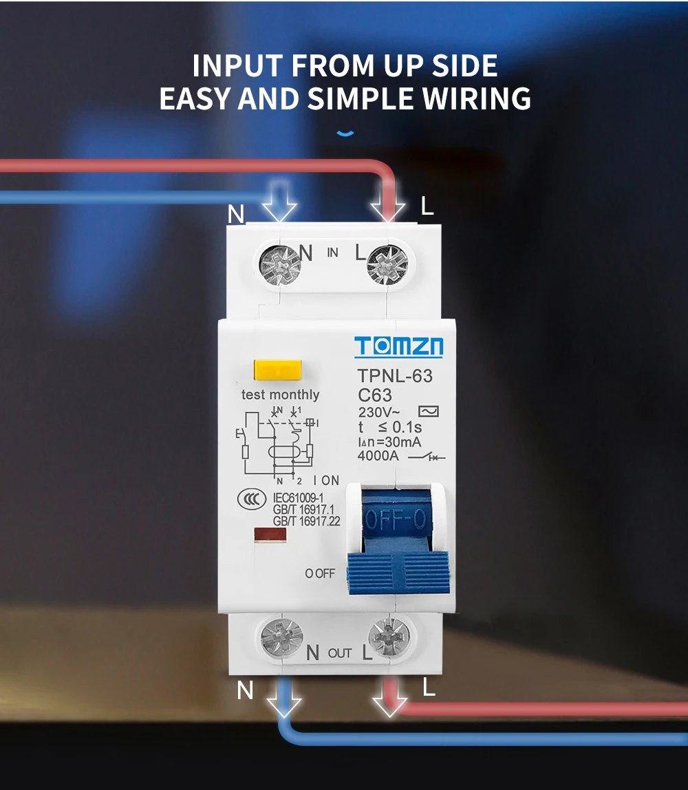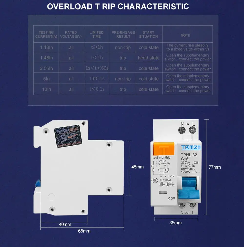 Автоматический выключатель TPNL DPNL 230V 1P + N с защитой от утечки по всему току
