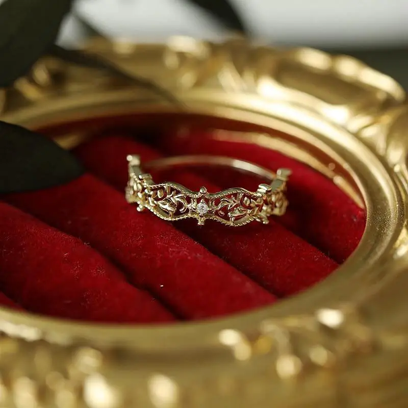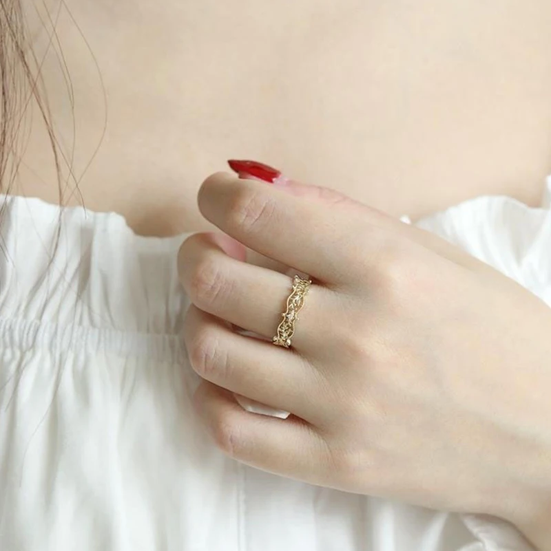 Дизайнерское уникальное креативное регулируемое кольцо с серебряными бриллиантами в японском стиле, легкое роскошное и изысканное ажурное украшение в стиле ретро