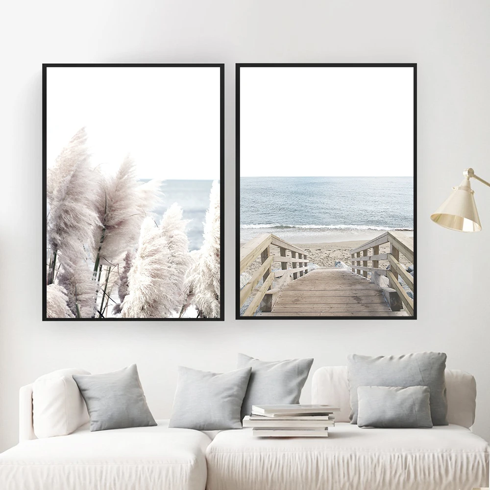 Настенная Картина на холсте с изображением берега пейзажа пастельного пляжа плакаты и принты пампасы для гостиной домашний декор трава настенные картины
