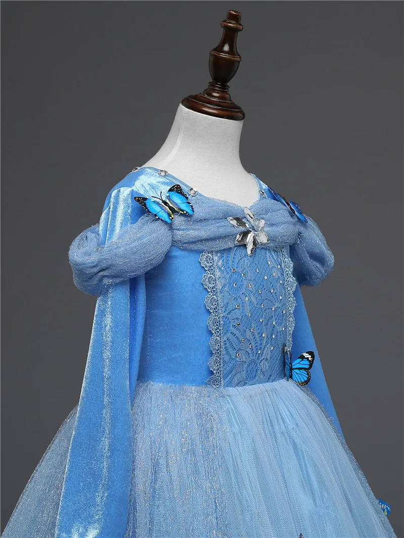 Новинка, летний костюм принцессы Эльзы, изящные фатиновые костюмы для девочек, праздничная детская одежда с длинным рукавом, вечернее платье для косплея