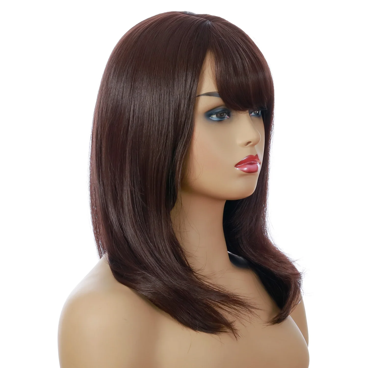 Женские парики средней длины, прямые волосы с челкой, синтетический...