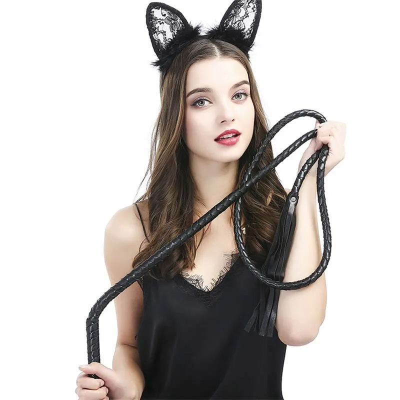 Хлыст для сексуальных женщин и девочек, кружевные повязки на голову с кошачьими лисьими ушками, аксессуары для волос, черные костюмы для Хэллоуина, вечеринки, подарок на день рождения