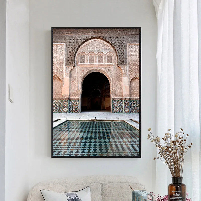 Марокканская АРКА, Картина на холсте со старой дверью, исламское здание, настенный плакат, украшение Хасана II, мечеть, картина, печать, современный мусульманский плакат