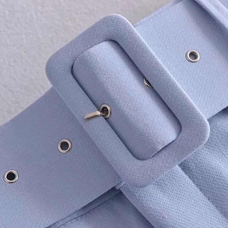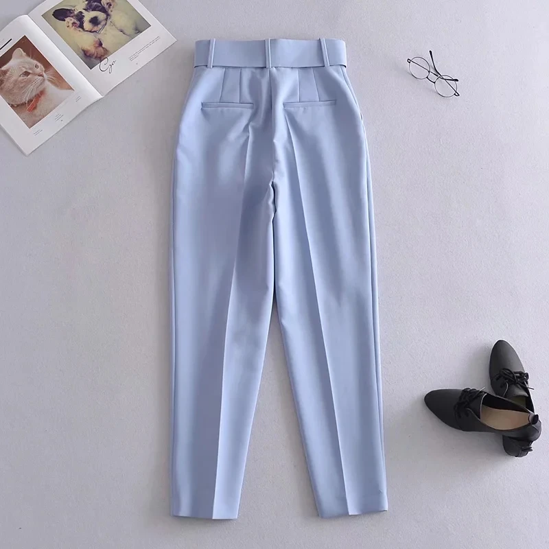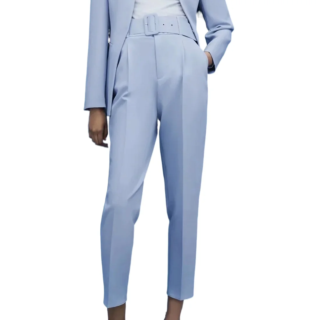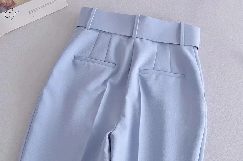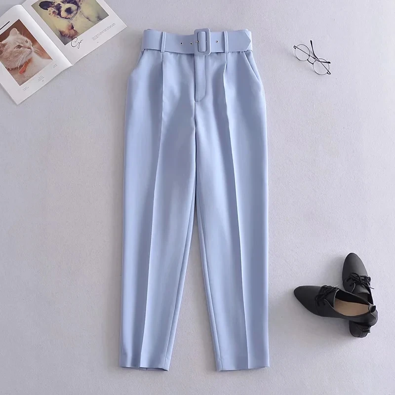 Брюки BLSQR женские Костюмные с высокой талией, офисные модные однотонные штаны с поясом и карманами, голубые, на весну-осень