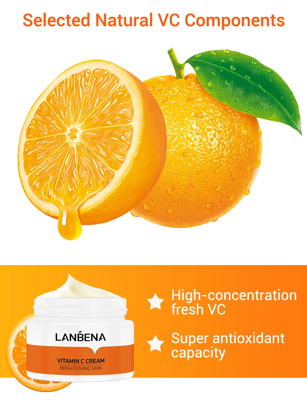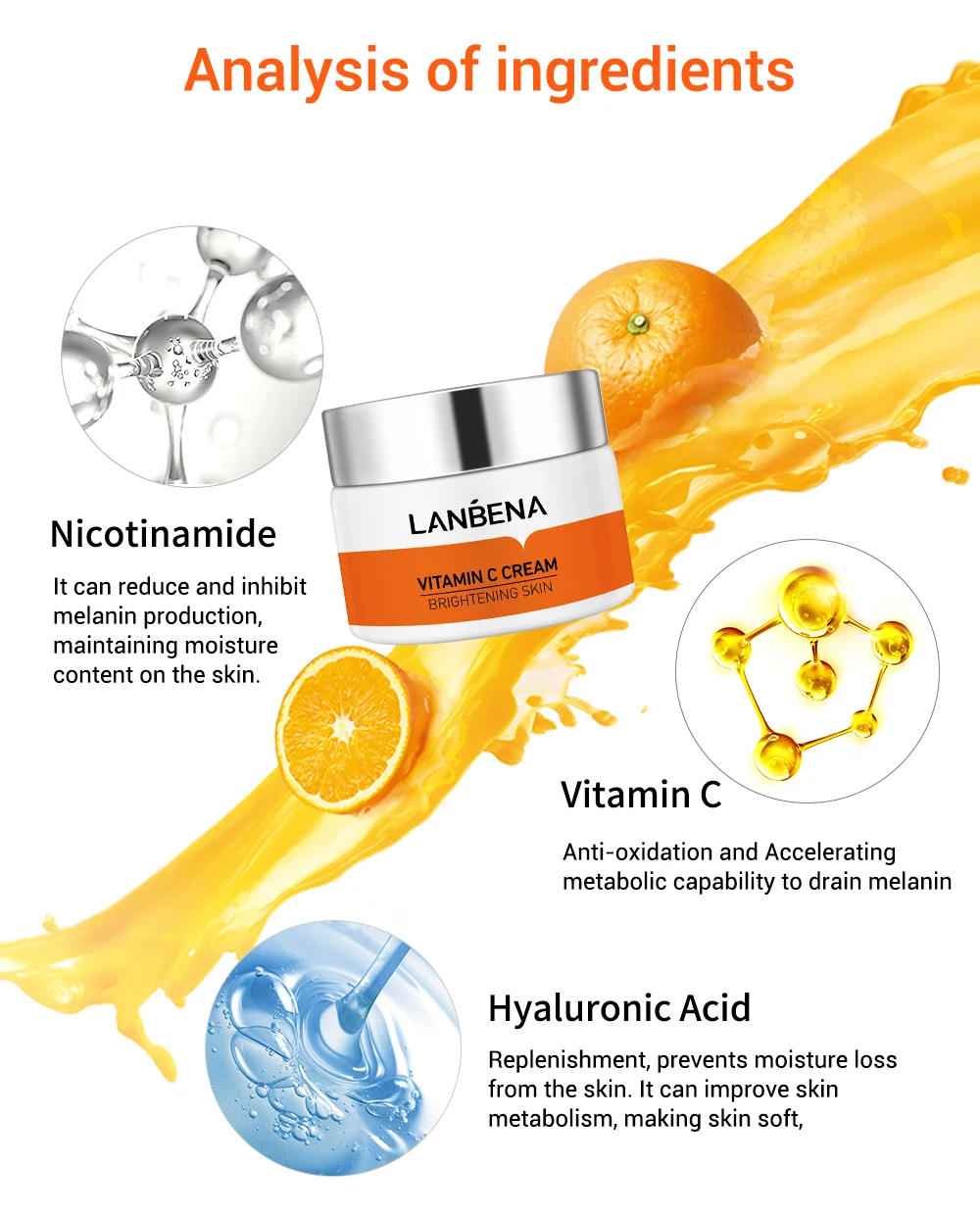 Крем для лица с витамином C от LANBENA, отбеливающий питательный Осветляющий крем для удаления веснушек, улучшающий тусклость кожи, омолаживающий, освежающий, 50 г
