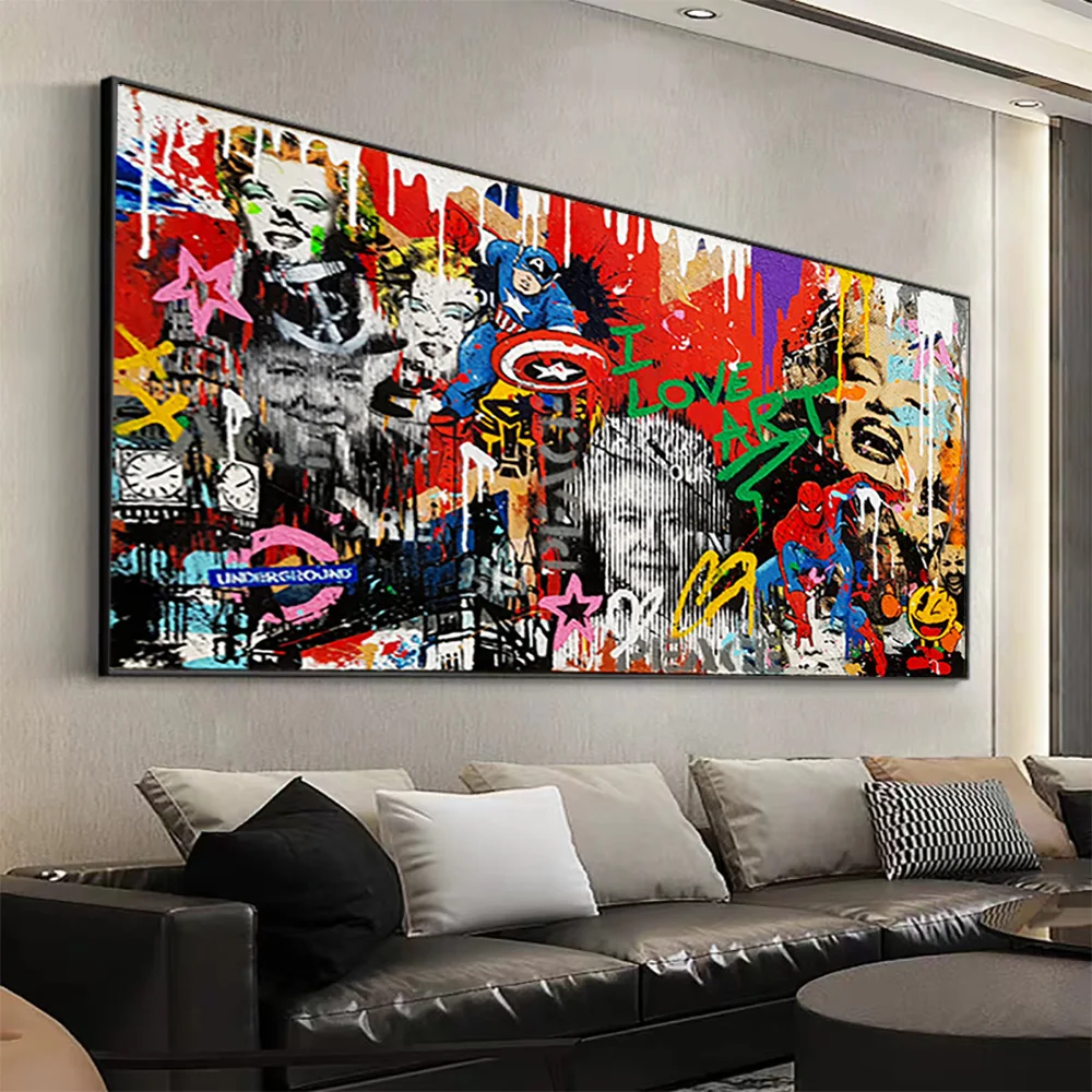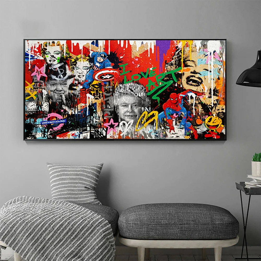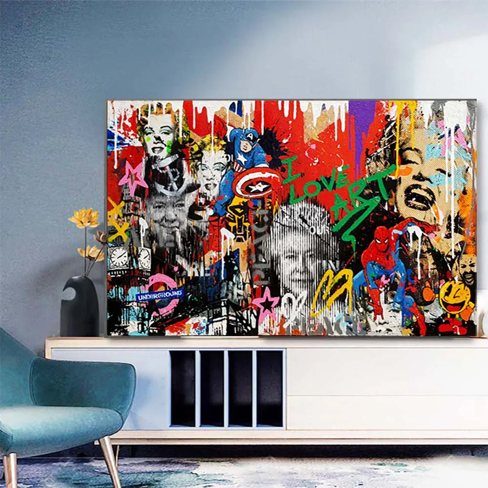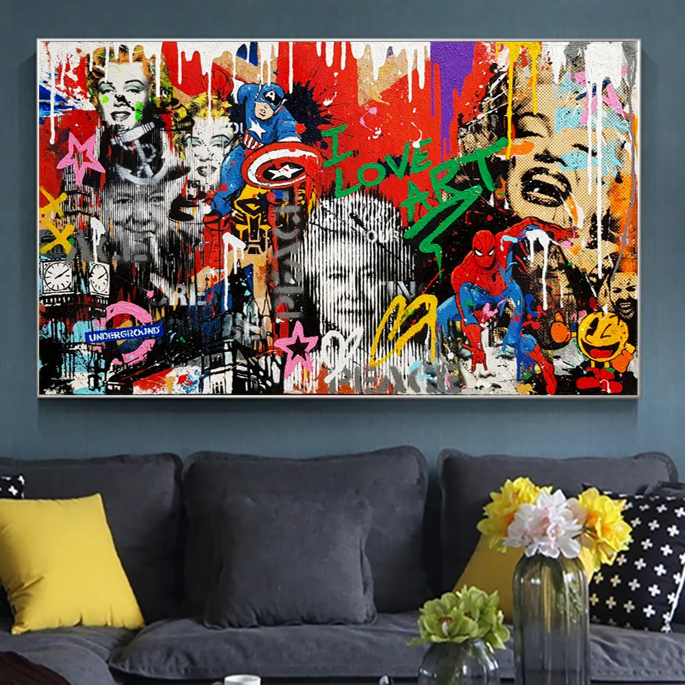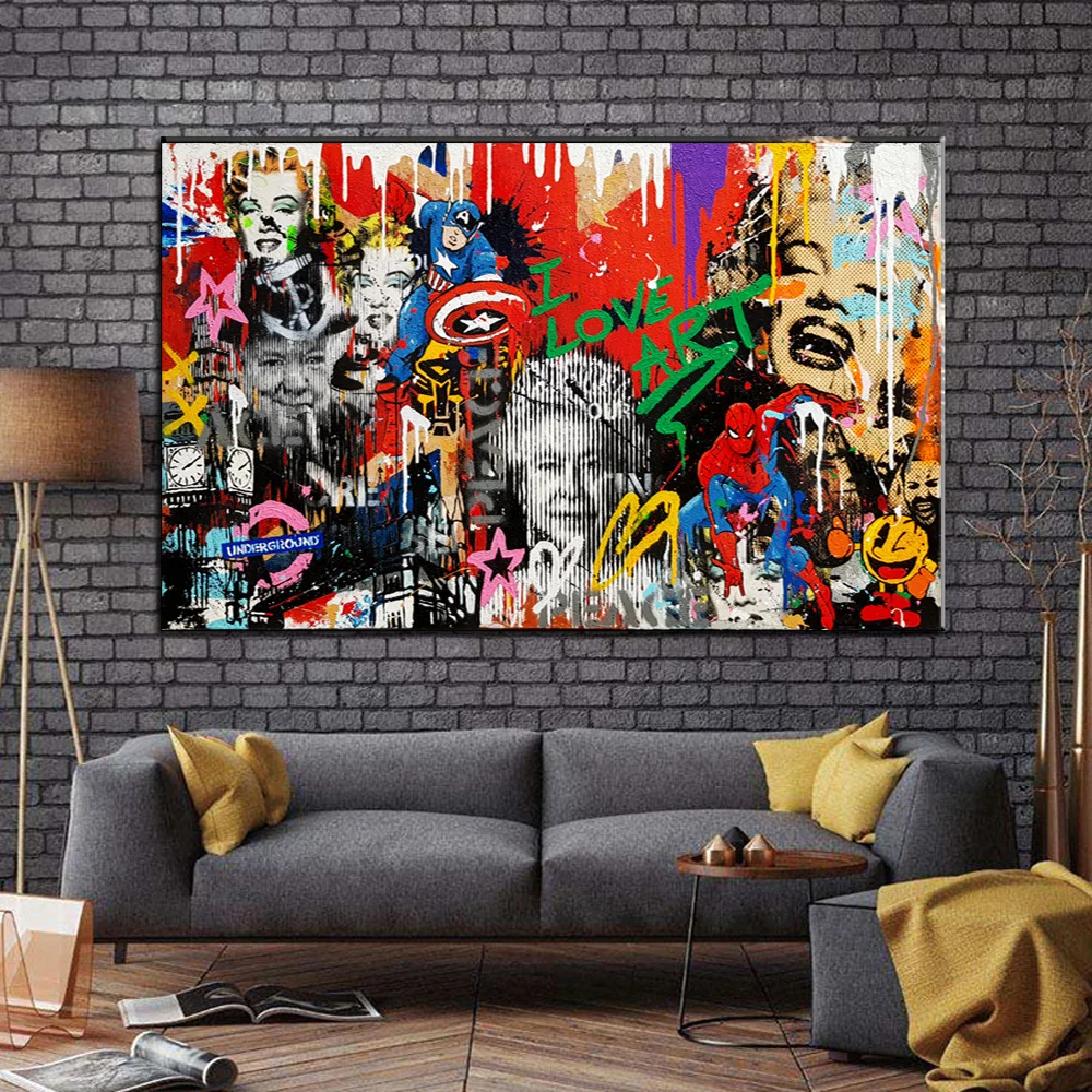 Абстрактные граффити Мэрилин Монро и Другое звезды холст картины все художественные плакаты и принты настенные картины для Декор в гостиную