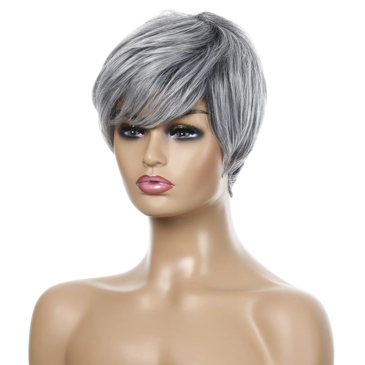 Парики для женщин, синтетический короткий парик с челкой, седые парики, термостойкие волосы
