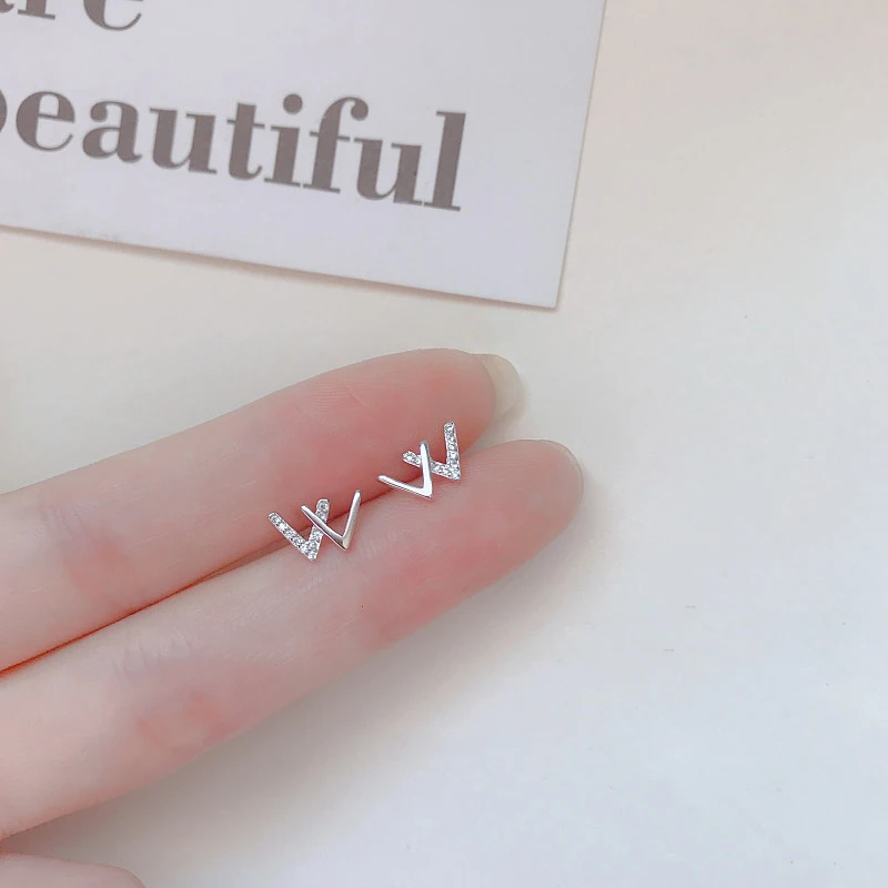 Женские серьги-гвоздики в форме сердца, с кристаллом из циркония