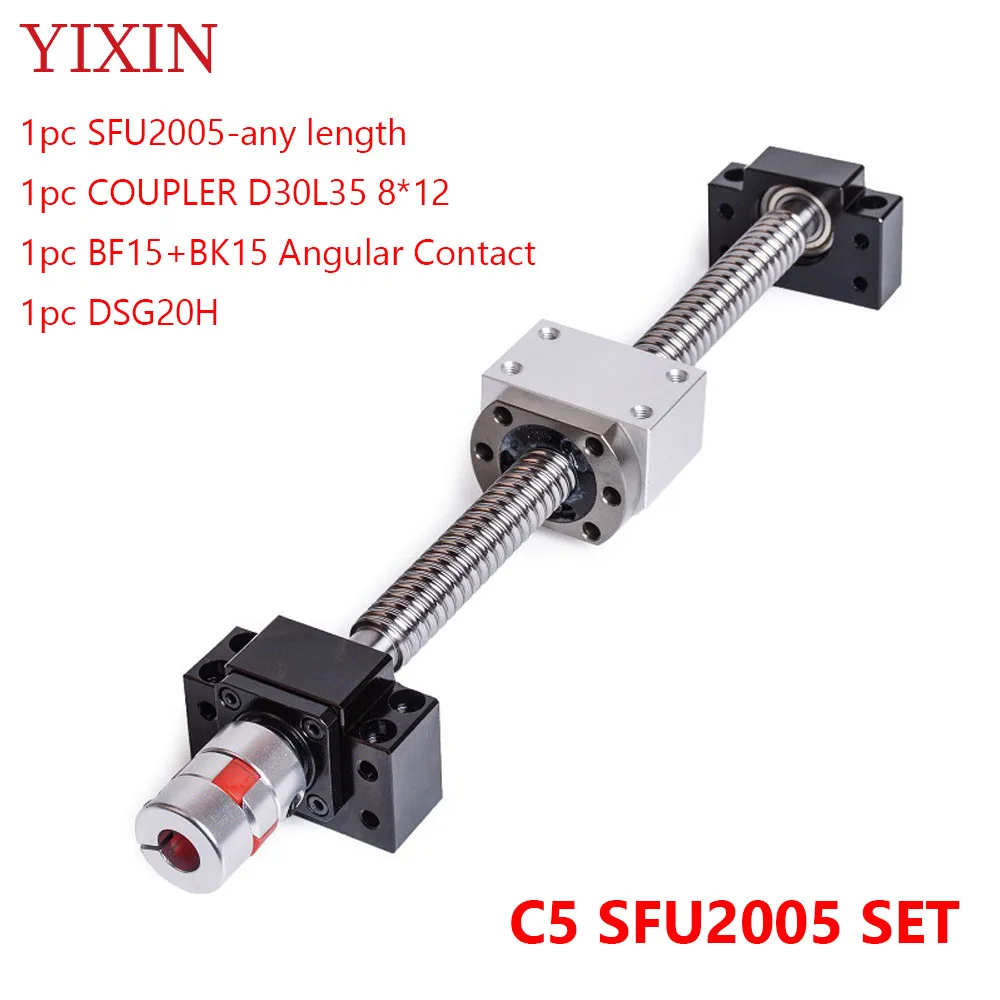 C5 шариковый винт SFU2005 набор настраиваемый размер конец обработанный + шариковая гайка + гайка Корпус BKBF15 Торцевая Поддержка + муфта RM2005 шариковый винт