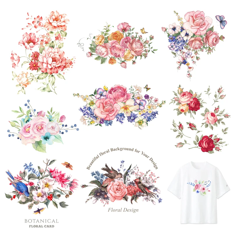 Термонаклейка на одежду для женщин, стирающаяся, с красивыми цветам...