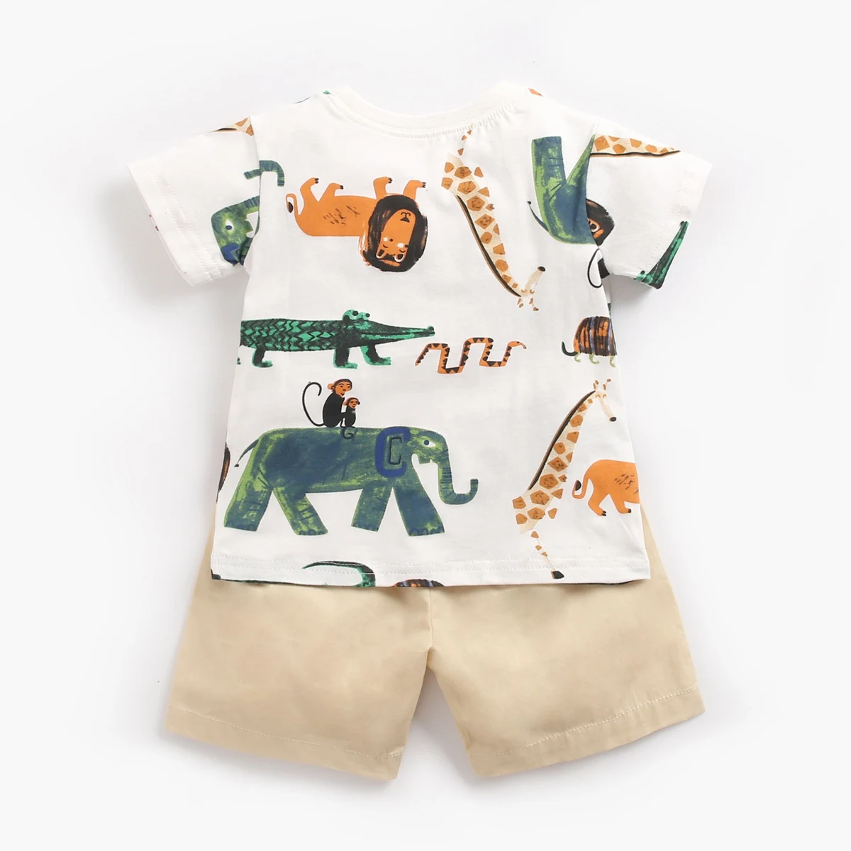 Комплект одежды для мальчиков, хлопковый, с коротким рукавом + шорты цвета хаки, 2 шт.компл.