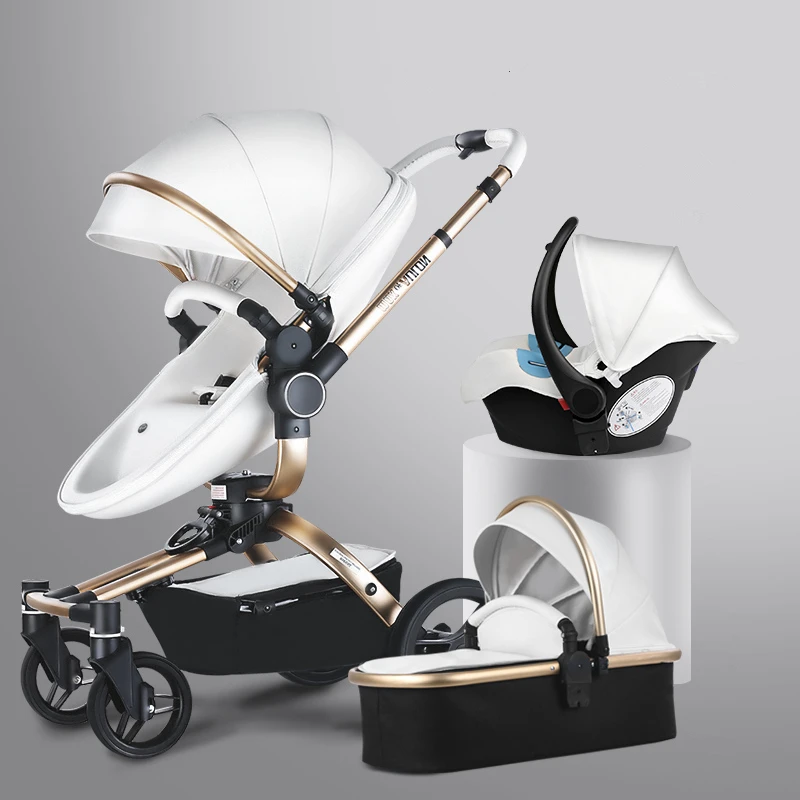 Коляска для новорожденных, складная Коляска из ПУ кожи, 3 в 1,2021