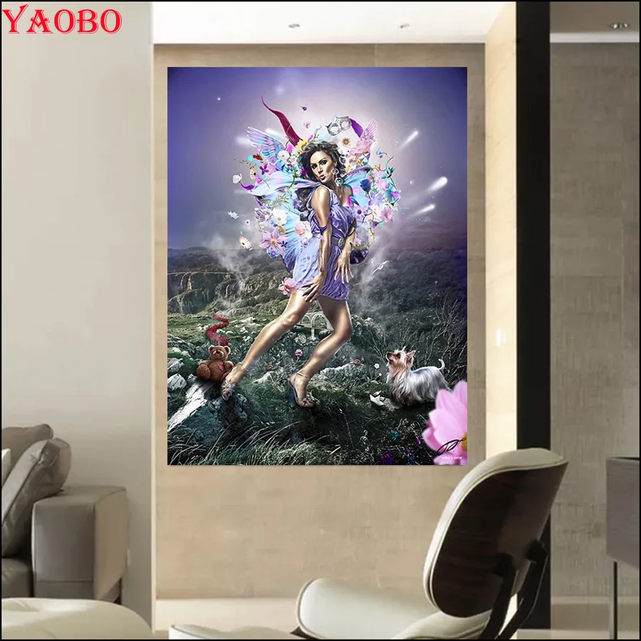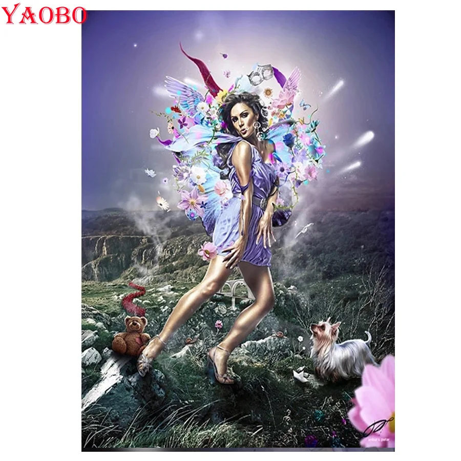 Полностью квадратная/круглая 5D алмазная картина красивая женщина с крыльями бабочки 3D Алмазная вышивка Алмазная мозаика Искусство домашний декор