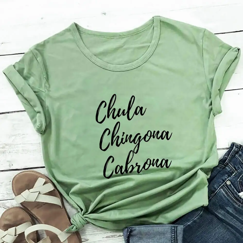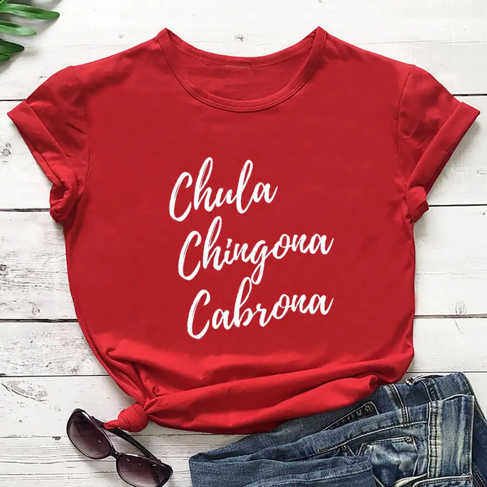 Chula Chingona 100% хлопчатобумажная женская футболка испанский рубашки Мексиканская летняя повседневная одежда с О-образным вырезом, короткий рукав Топ Chula рубашки Мексиканская подарок