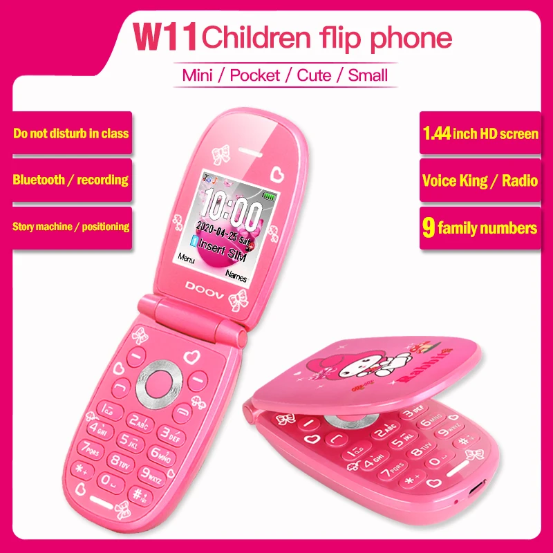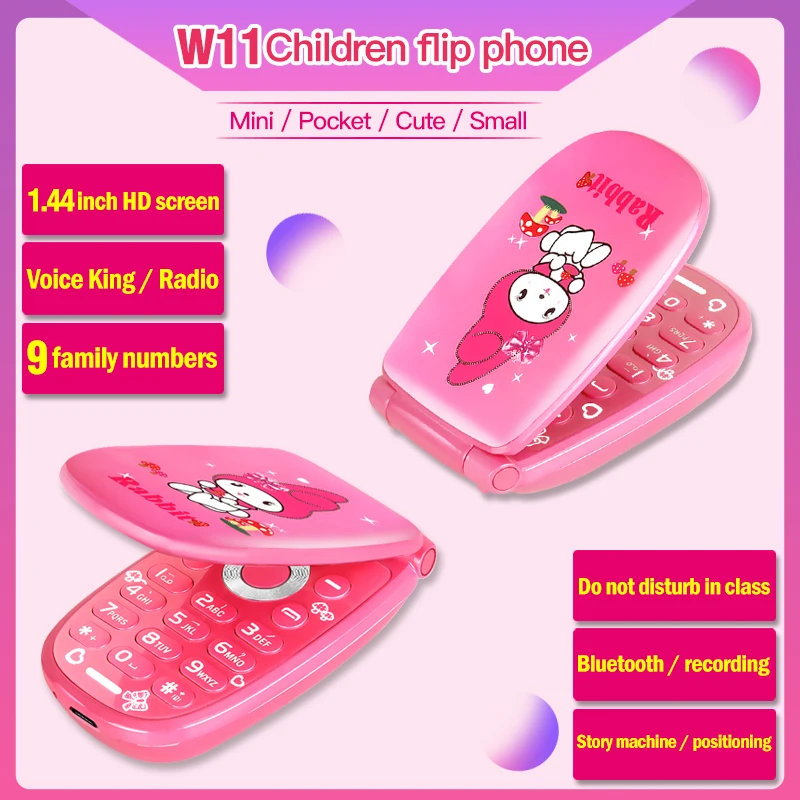 W11 мини раскладушка детский, для мобильного телефона 1,44 "Одиночная Sim MP3 беспроводная гарнитура Bluetooth мини маленький флип милый сотовый телефон для девочек