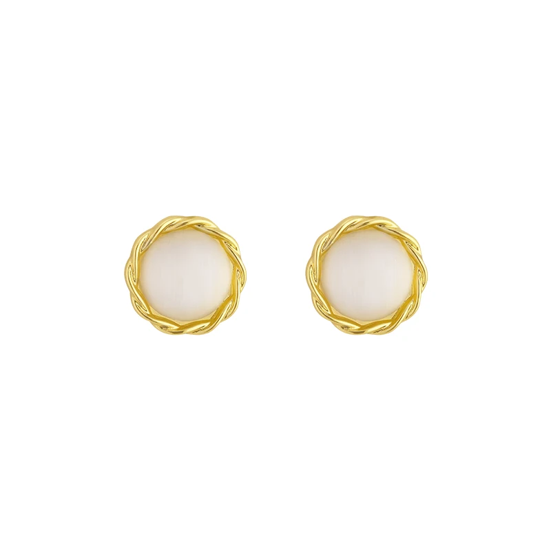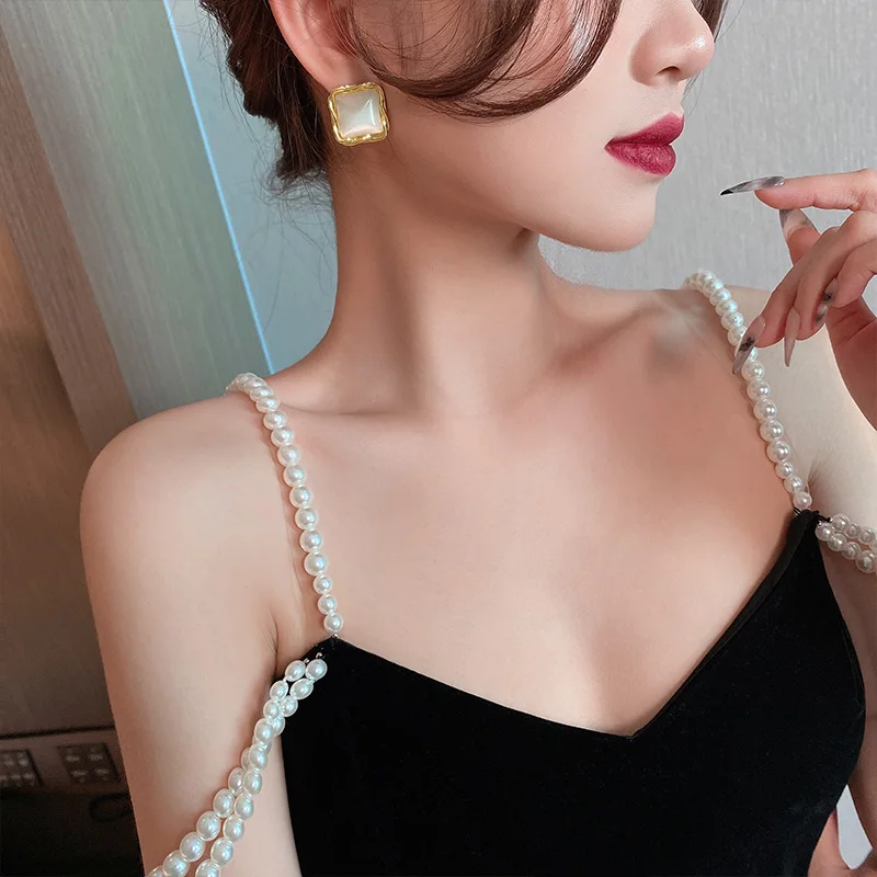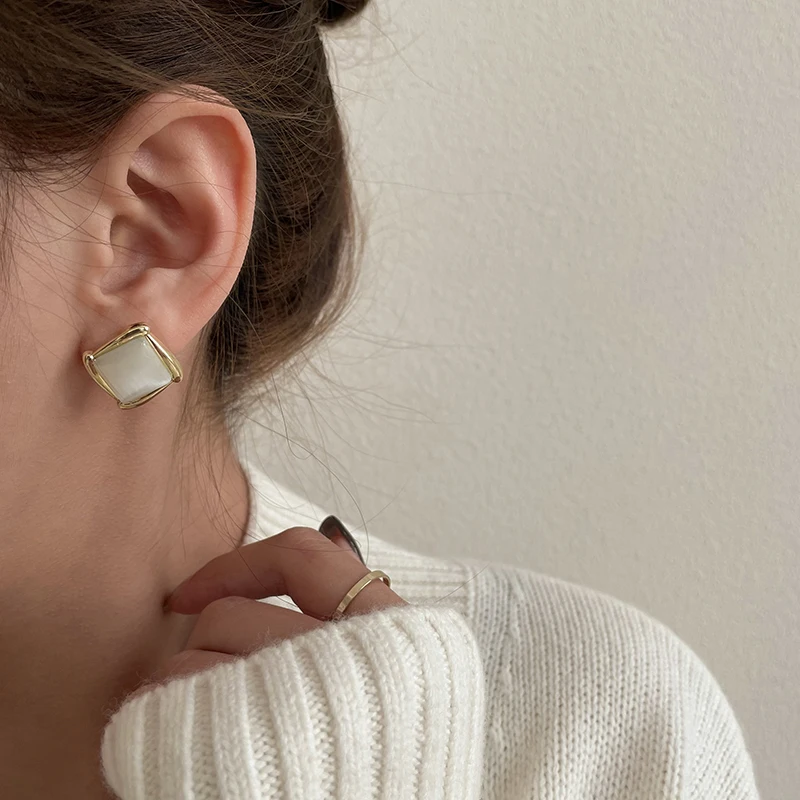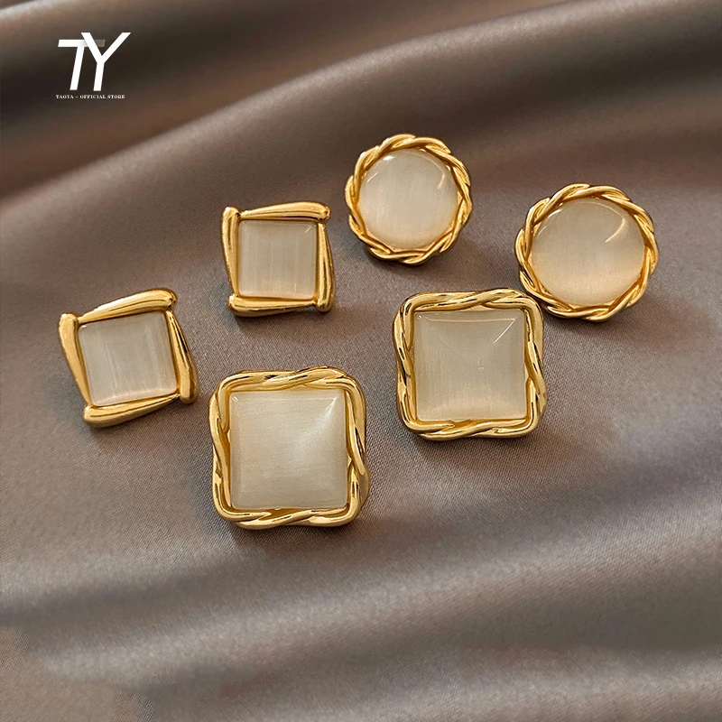 Серьги-гвоздики с опалом женские, классические золотистые Геометрические элементы в Корейском стиле, квадратные украшения, характерные женские серьги