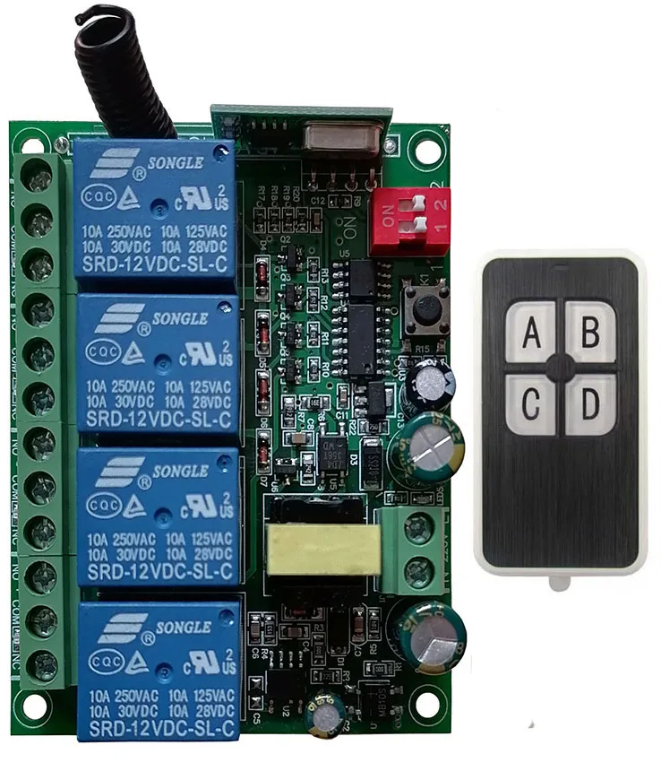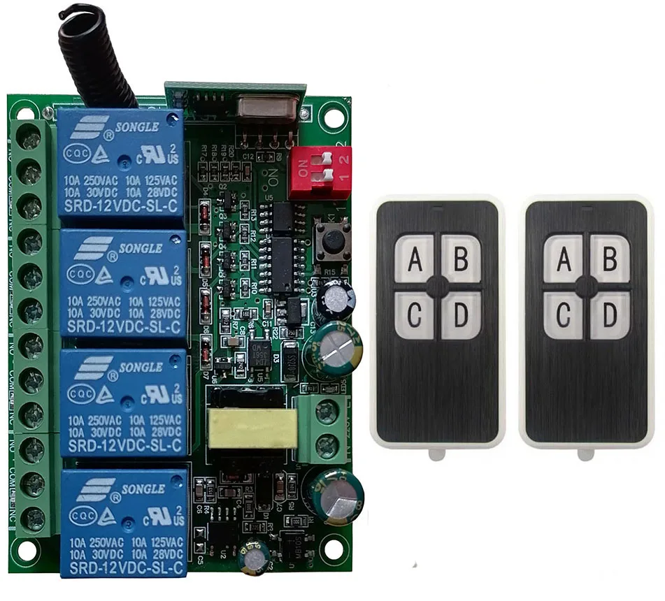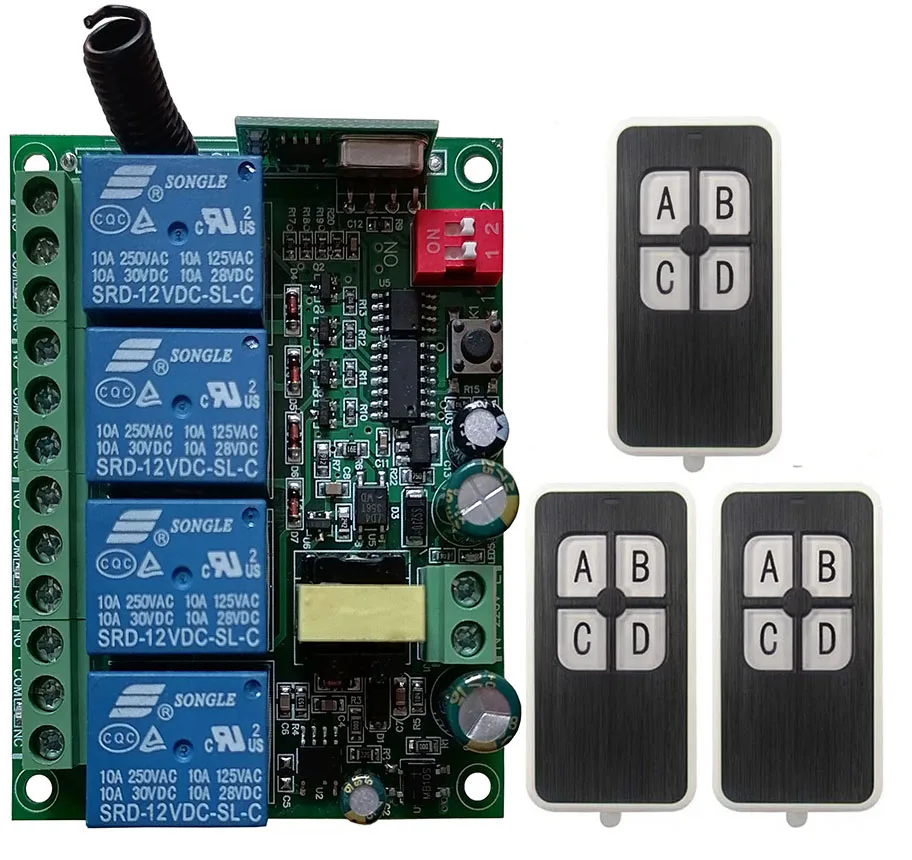 Компания проектирует и производит дорожный многофункциональный переключатель управления беспроводной связью для четырех релейных выходных сигналов, может сделать для управления оборудованием или электрическим переключателем или пройти, преобразования и различных специальных требований программы управления. Он в основном используется в электрических дверях, окнах, подъемном оборудовании, воротах, подъеме, промышленном контроле, освещении и электрическом управлении.