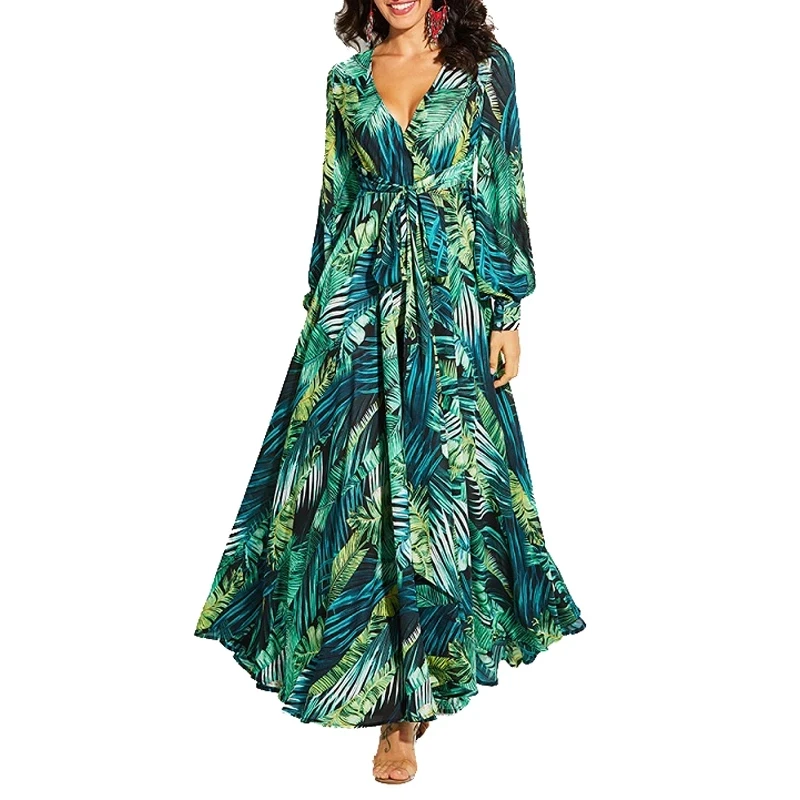 Женское богемное платье макси, Летнее Длинное платье с цветочным принтом, Размеры S-2XL, размера плюс