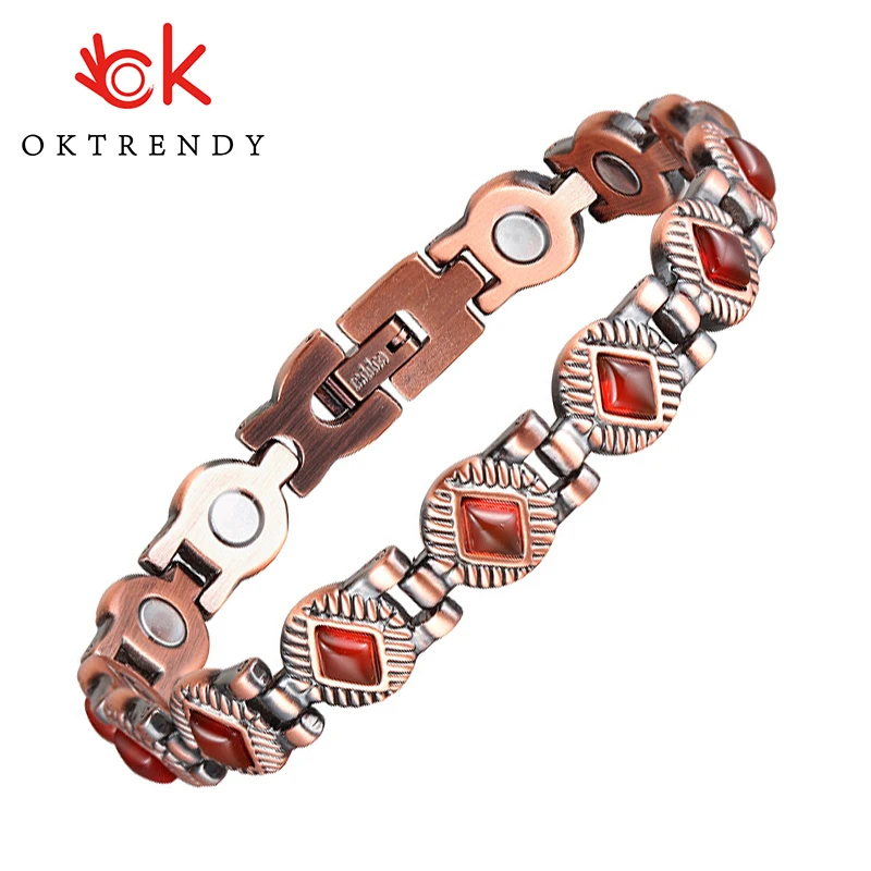 Oktrendy, натуральный драгоценный камень, медь, магнитный браслет, женский браслет из чистой меди, магнитный браслет, целебная цепочка, браслет