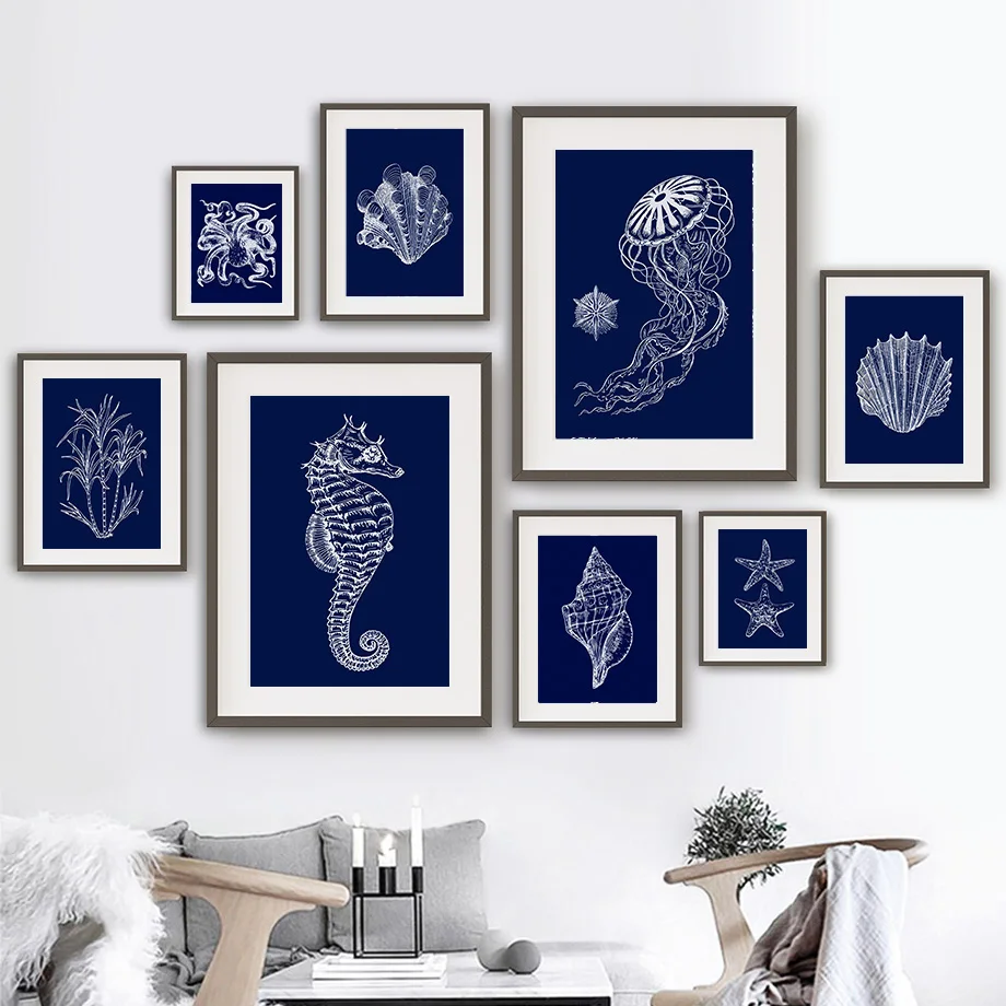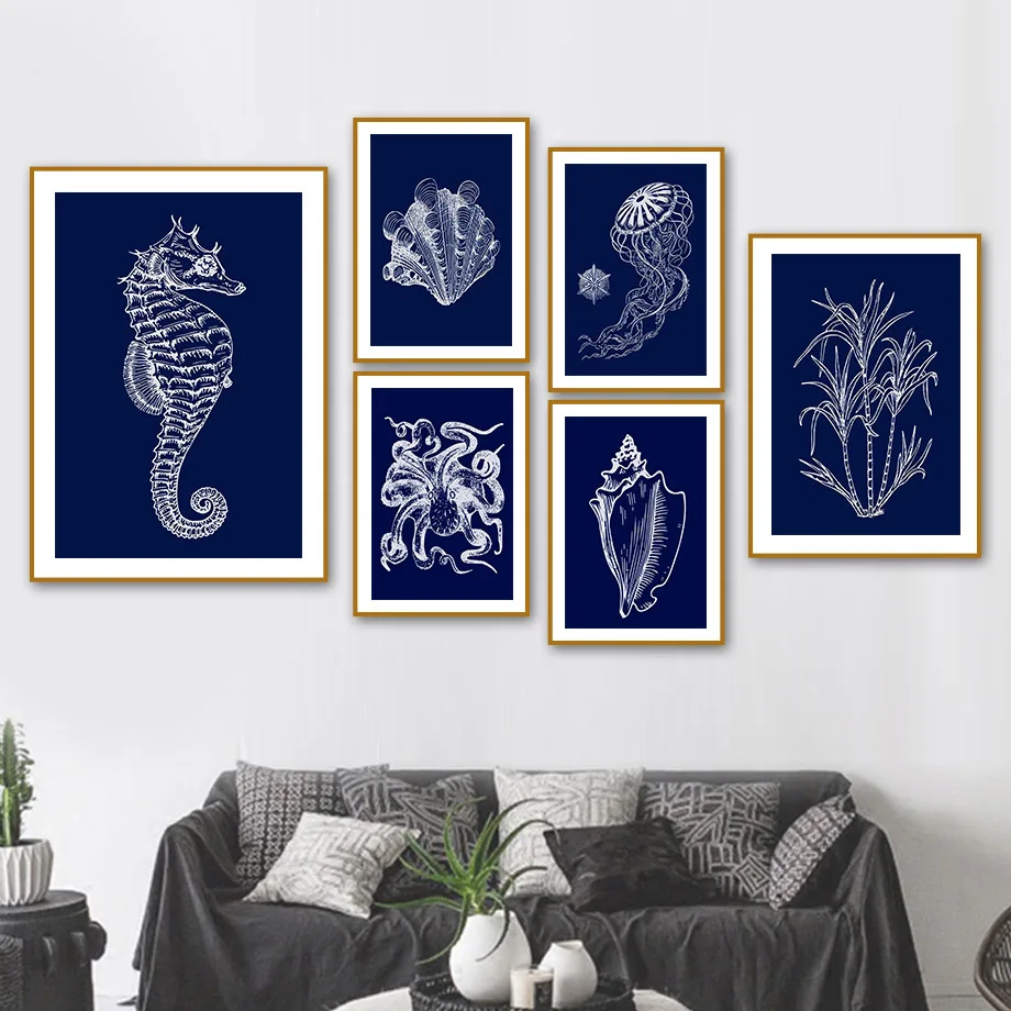 Морская звезда ракушка Медуза Коралл Осьминог настенная живопись на холсте скандинавские плакаты и принты настенные картины для декора гостиной