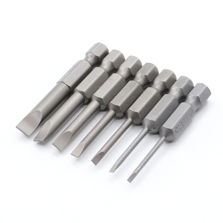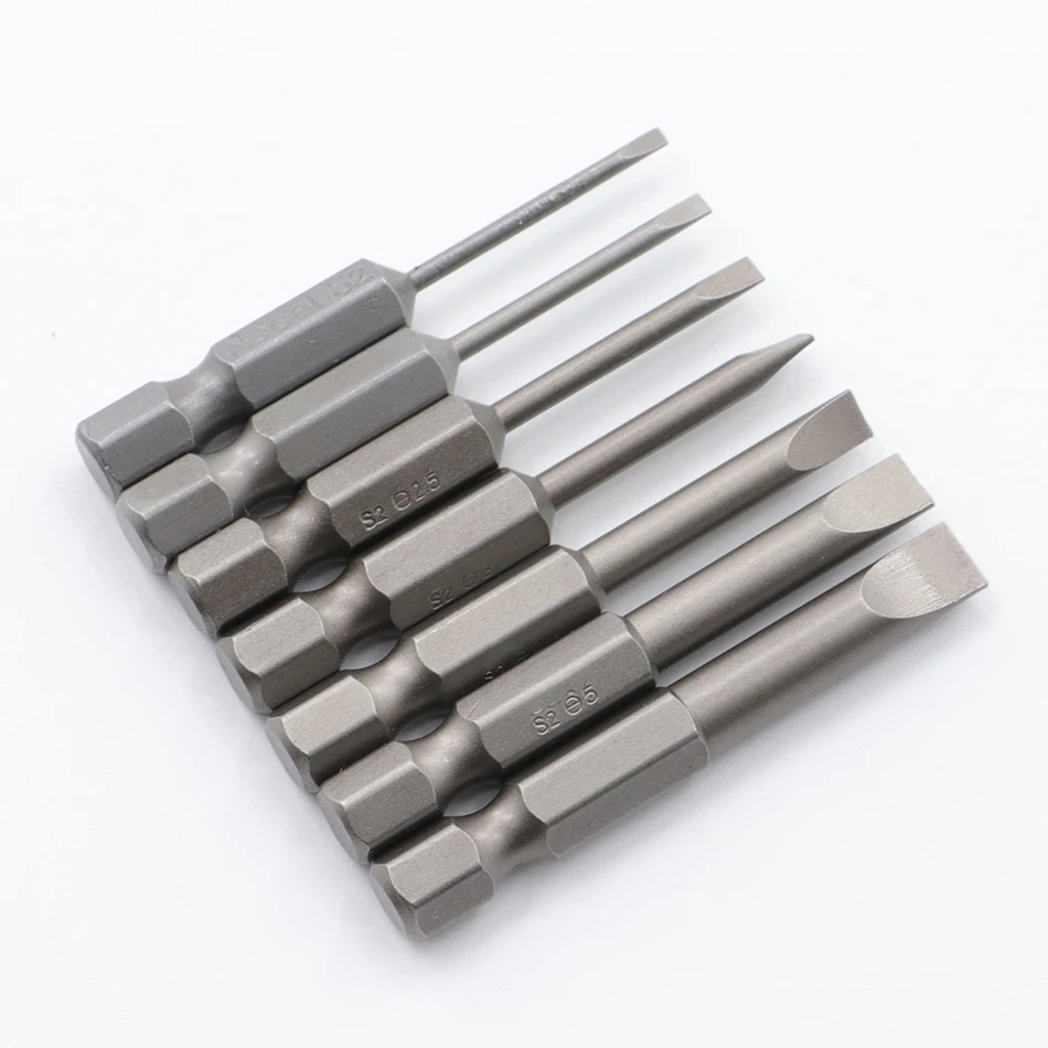Эти наконечник с прорезью насадок для отверток изготовлены из легированной стали S2, которая является широко используемым материалом в оборудовании.