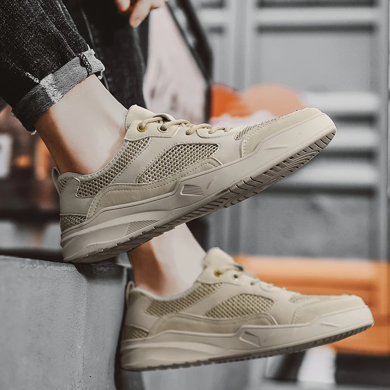 Кроссовки мужские из свиной кожи, сетчатые дышащие, износостойкие, ...