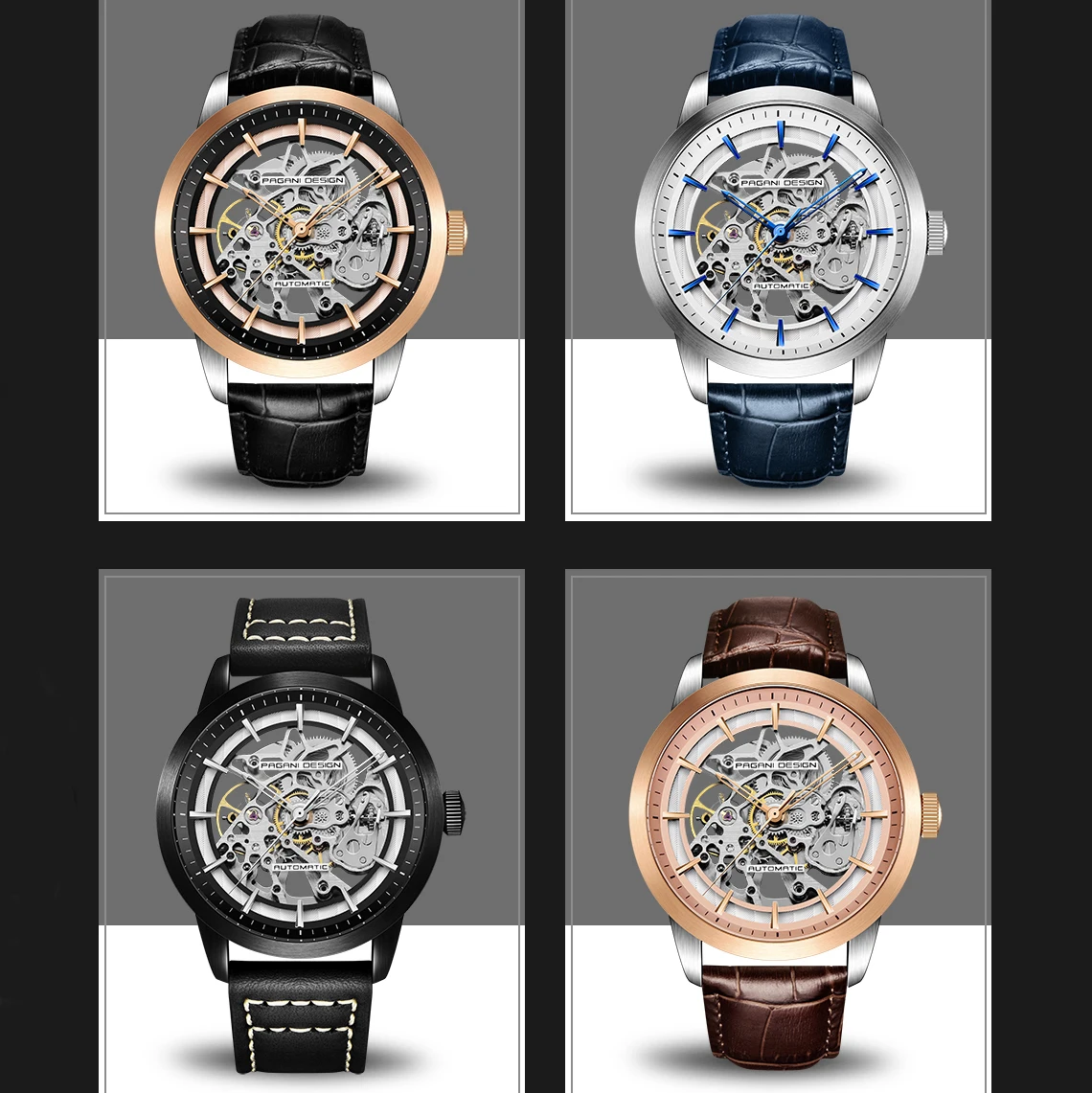 Часы-скелетоны PAGANI Мужские механические, брендовые люксовые наручные, с кожаным ремешком