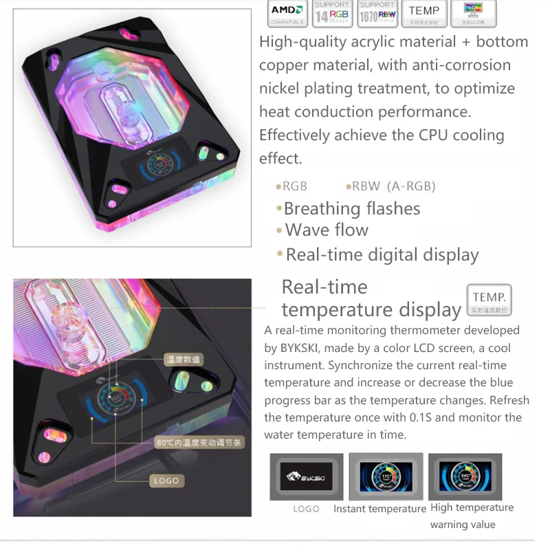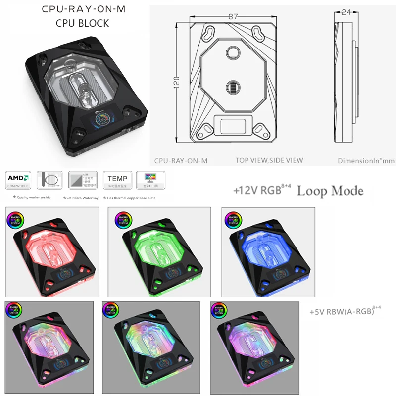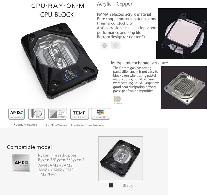 Bykski CPU-RAY-ON-M,AMD CPU водный блок с OLED температурным дисплеем для RYZEN AM3/AM3 +/AM4 CPU кулерAMD:Рызень ThreadRipperRyzen 9/Ryzen 7/Ryzen 5/Ryzen 3AM4/AM3 +/AM3AM2 +/AM2/FM2 +FM2/FM1