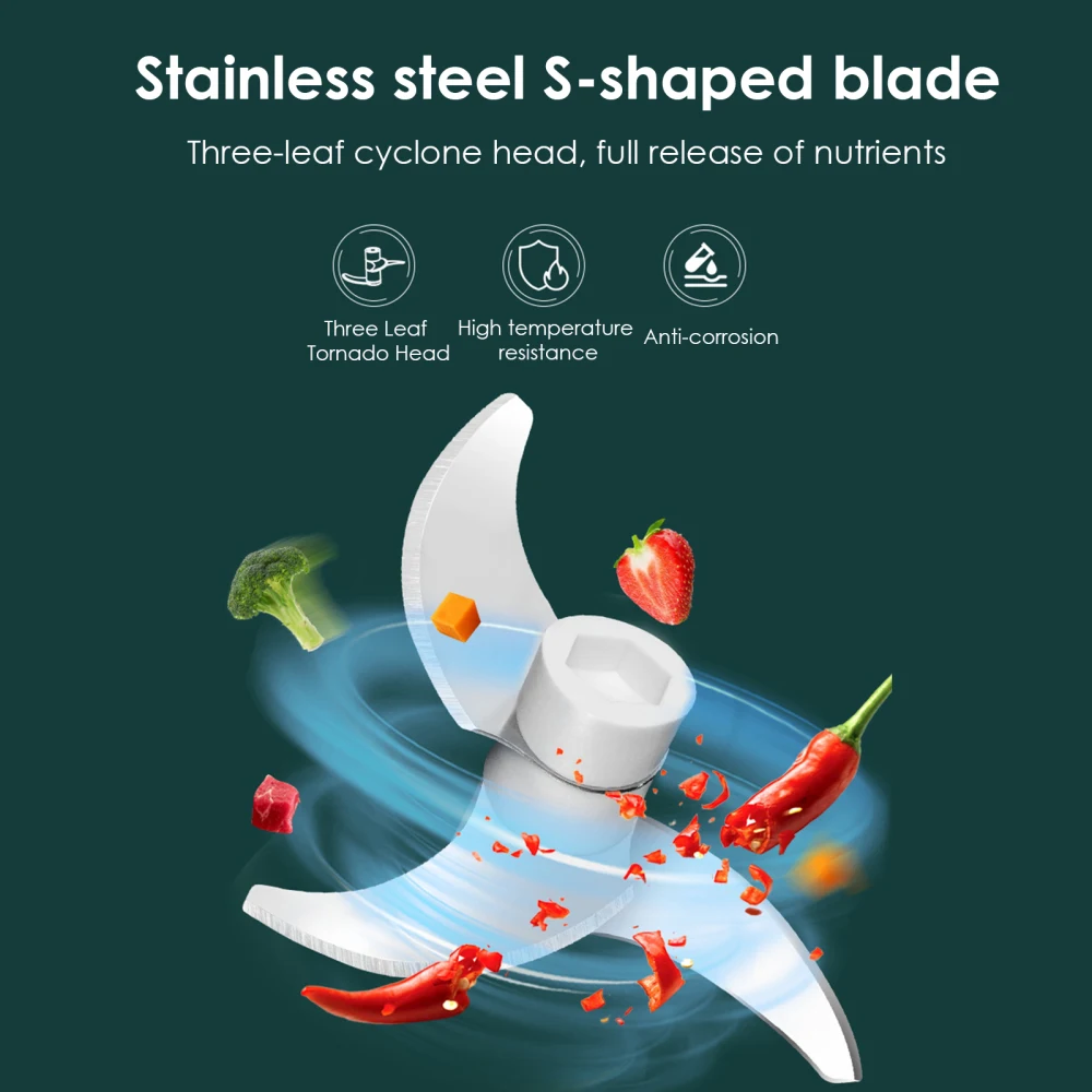 Эффективное приготовление пищи: Новая умная электрическая давилка чеснока, нержавеющая сталь s-тип трехлистный Циклон головка столовых приборов, может легко Измельчить чеснок, перец, мясо, овощи и фрукты и быстро сделать вкусные ингредиенты и соки.